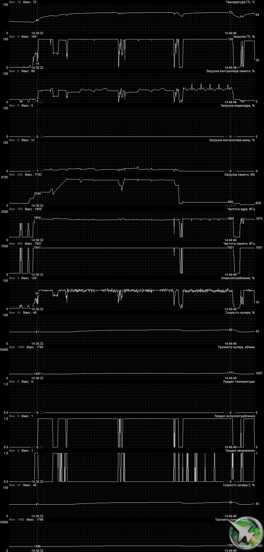 | 17 | RTX 2070 Super 8 ГБ, 1605—1950/14000 | 238 | 950 | 40 000 |
