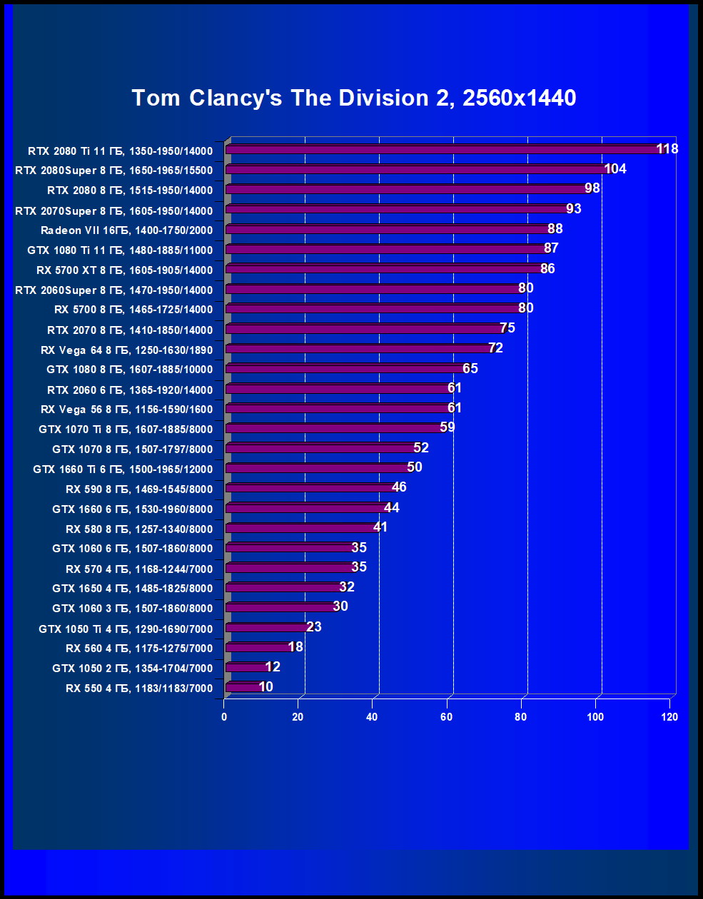 | 25 | Radeon VII 16 ГБ, 1400—1750/2000 | 176 | 900 | 51 000 |
