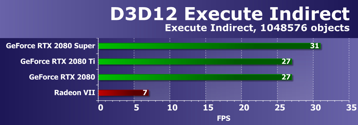 Из более-менее новых бенчмарков мы начали использовать несколько примеров, входящих в DirectX SDK и пакет SDK компании AMD (скомпилированные примеры применения D3D11 и D3D12), а также несколько тестов для измерения производительности трассировки лучей. В качестве полусинтетического теста у нас также используется и популярный 3DMark Time Spy, помогающий определить прирост от асинхронных вычислений.