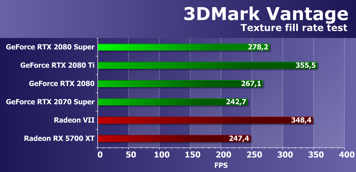 Из ранее активно использовавшихся нами тестов RightMark3D мы оставили лишь несколько самых тяжелых вариантов. Остальные уже изрядно устарели и на столь мощных GPU упираются в различные ограничители, не загружают работой блоки графического процессора и не показывают истинную его производительность. А вот синтетические Feature-тесты из набора 3DMark Vantage мы пока что решили оставить в полном составе, так как заменить их попросту нечем, хотя и они уже устарели.
