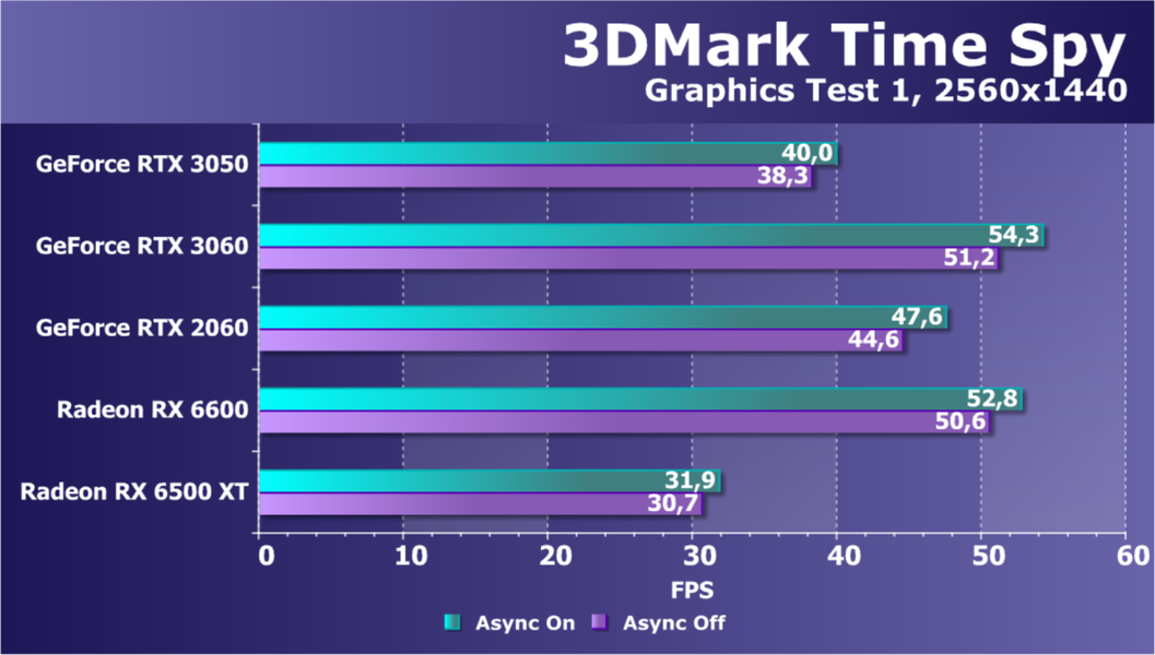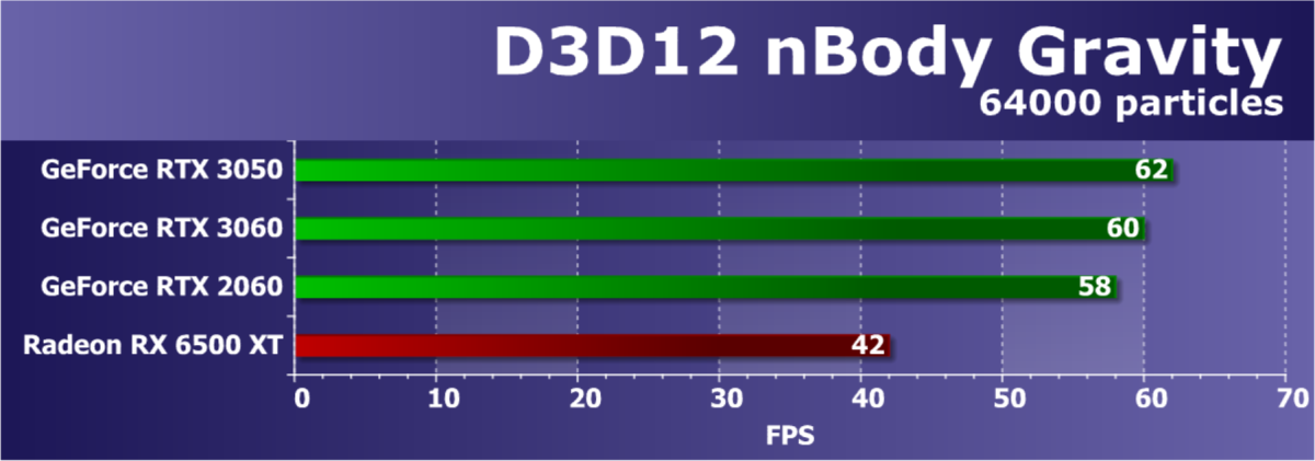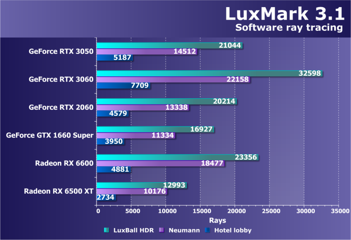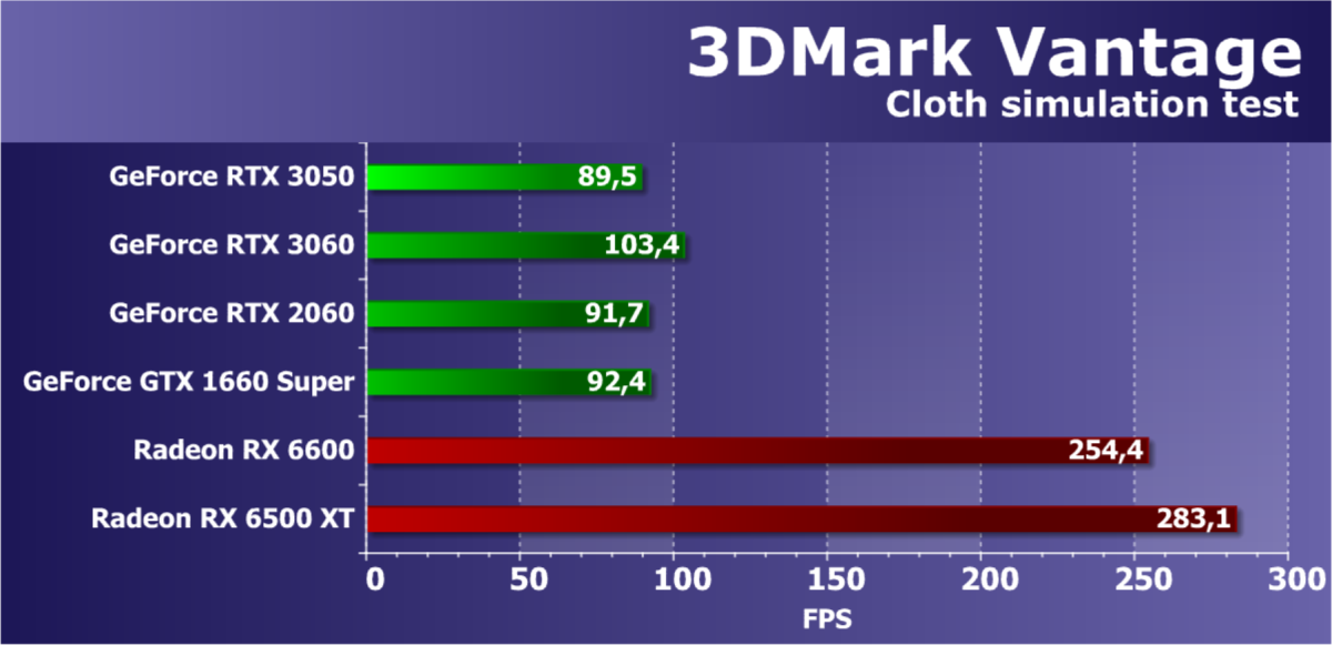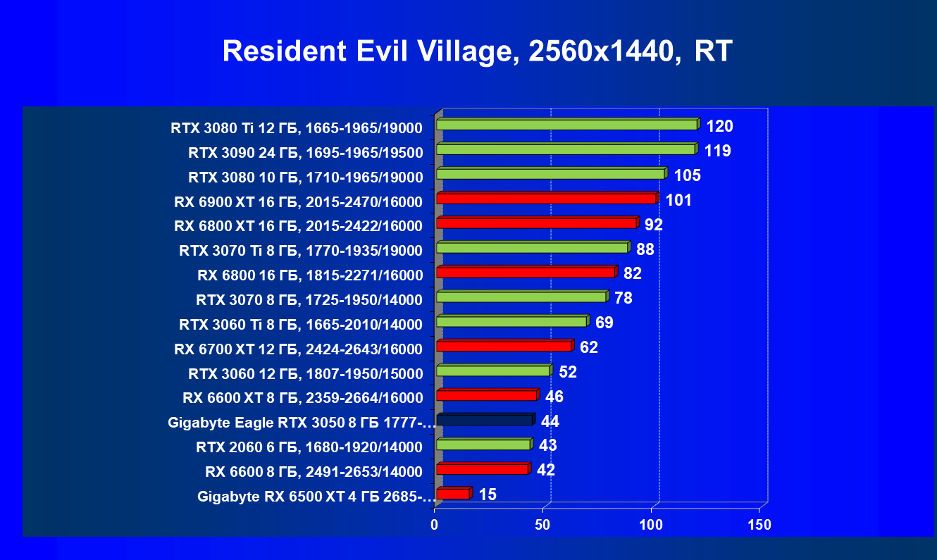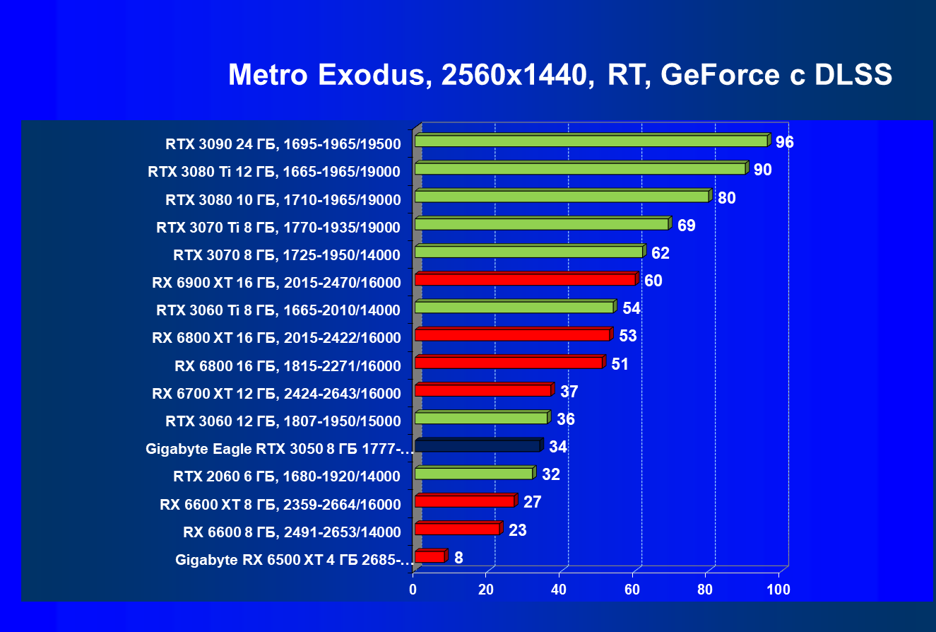 Рейтинг фиксирует, что GeForce RTX 3050 по производительности соответствует GeForce RTX 2060, а из видеокарт конкурента Radeon RX 6600 быстрее, а Radeon RX 6500 XT значительно медленнее.