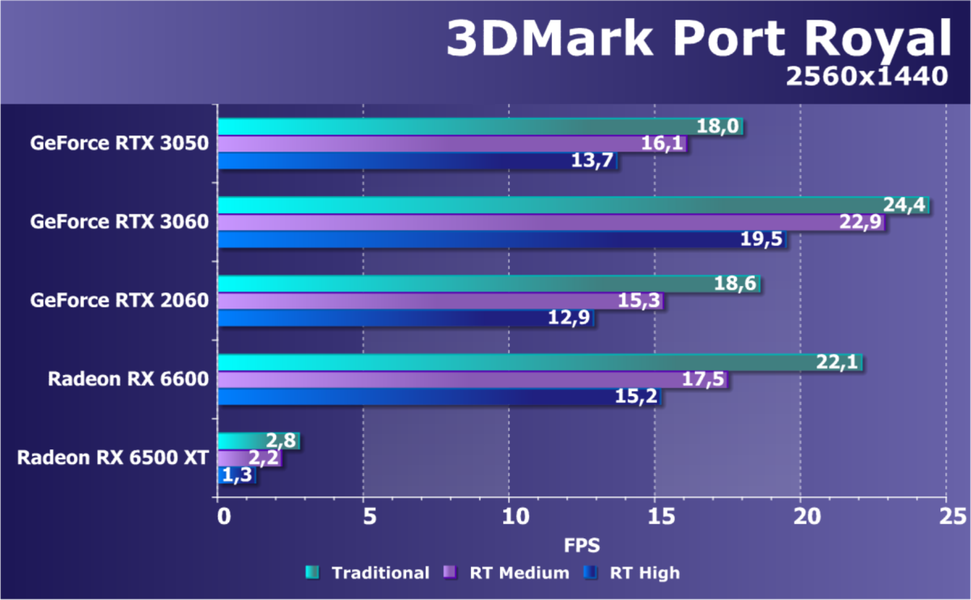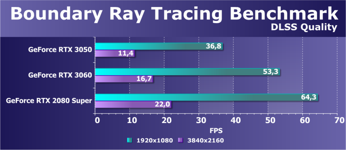 В случае игр с трассировкой лучей в большинстве случаев новинка находится на уровне GeForce RTX 2060.