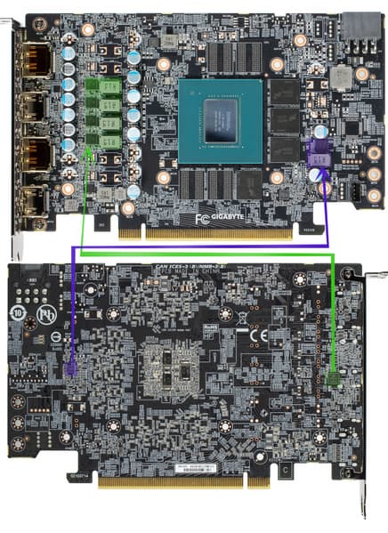 Как и ее главный конкурент на рынке, компания Nvidia применяет в бюджетных решениях урезание количества доступных линий PCI Express, но хотя бы не такое радикальное как четыре линии у Radeon RX 6500 XT — GeForce RTX 3050 урезана лишь до восьми линий. Негативные эффекты от урезания может и будут, но не такие явные, как при урезании до четырех линий, и то только при использовании устаревших системных плат с PCIe 3.0, в более новых все будет в порядке в любом случае. Nvidia объясняет свое решение тем, что это позволит им использовать другие чипы на всем протяжении существования продукта на рынке. Иными словами, они оставляют возможность использования другого варианта GPU — GA107, известного по мобильным решениям.
