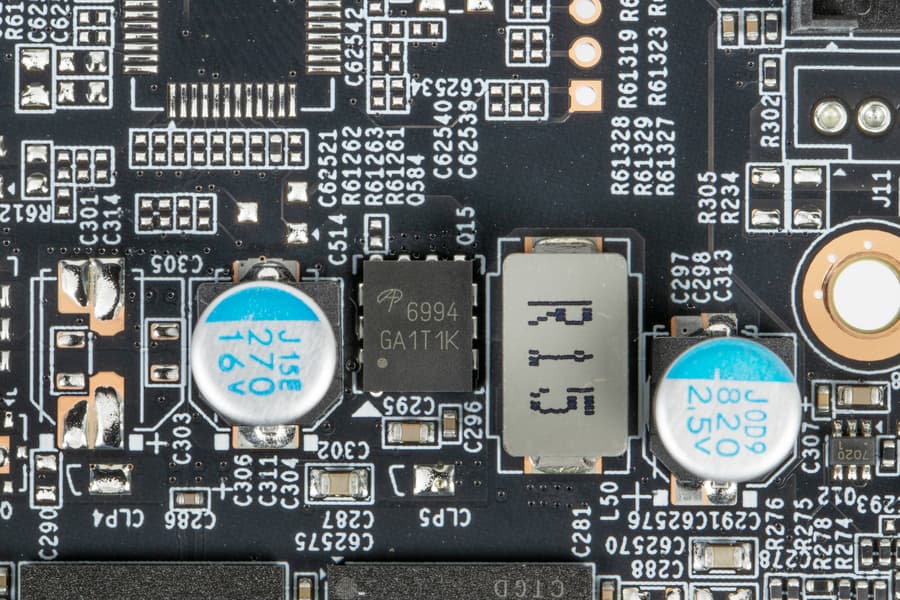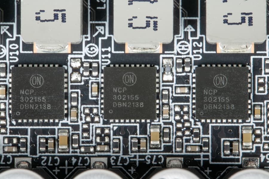 Что касается конкретной карты Gigabyte GeForce RTX 3050 Eagle 8 ГБ, то она достаточно компактная, занимает два слота в корпусе, но шум у нее откровенно высоковат при не слишком впечатляющем охлаждении (какой контраст с Gigabyte Radeon RX 6500 XT Gaming OC 4 ГБ!). У карты нет подсветки, что порадует определенную категорию потенциальных покупателей. Еще из плюсов можно перечислить наличие защитной пластины на тыльной стороне изделия, которая обеспечивают необходимую прочность, предотвращая изгиб и деформацию печатной платы. А также стабильную работу видеокарт GeForce RTX 3050 серии Eagle от Gigabyte обеспечивают многофазные модули питания ключевых компонентов, а также высоконадежные дроссели и конденсаторы.