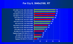 Видеокарты Radeon RX 6000 очень сильно теряют в производительности при включении трассировки лучей, здесь GeForce RTX 3050 успешно соперничает с более дорогим Radeon RX 6600 XT.