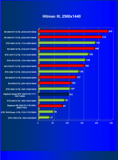 | 13 | RX 6600 XT 8 ГБ, 2359—2664/16000 | 396 | 57 | 70 000 |