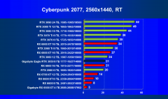 Результаты тестов со включенной аппаратной трассировкой лучей и/или DLSS/FSR в разрешениях 1920×1200, 2560×1440 и 3840×2160