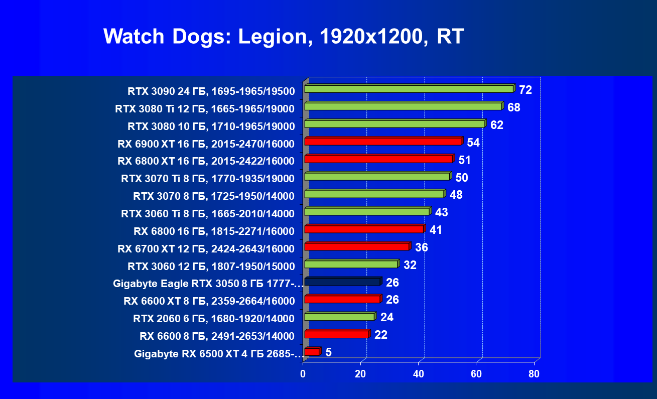 | 18 | GTX 1650 4 ГБ, 1665—1825/8000 | 63 | 22 | 29 000 |