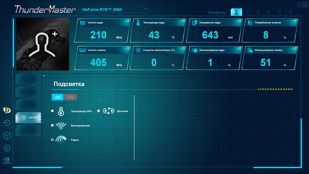 Добавим пару строк о поддержке стандарта вывода изображения HDMI 2.1 и аппаратного декодирования видеоданных в формате AV1. Они поддерживаются всей серией GeForce RTX 30, включая RTX 3060. Разъемы стандарта HDMI 2.1 позволяют подключить устройства с 4K-разрешением и частотой обновления в 120 Гц или 8K с 60 Гц, а аппаратный декодер AV1 обеспечивает просмотр онлайн-видео в лучшем качестве, по сравнению с известными форматами, вроде H.264, HEVC и VP9.