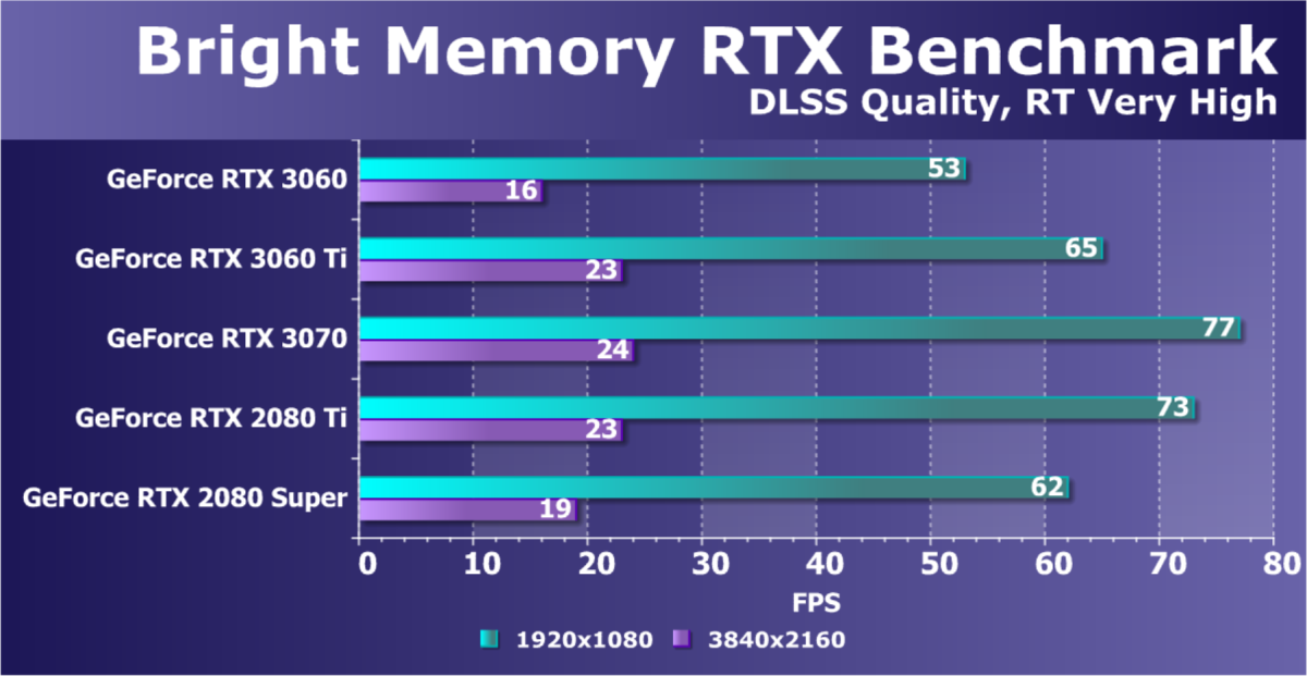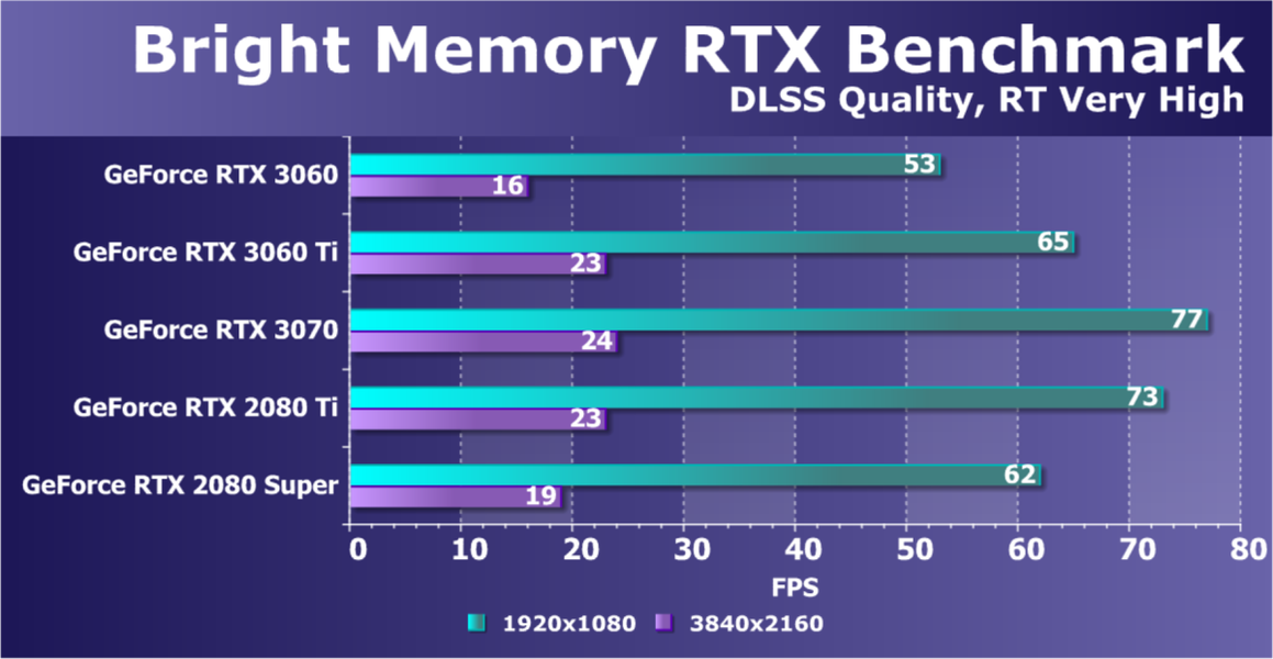 Изучая Nvidia GeForce RTX 3060 Ti, мы убедились, что он позволяет играть в разрешении 2.5К с хорошей скоростью при сочетании RT c DLSS. Без включения RT ускоритель GeForce RTX 3060 Ti мог в ряде игр предложить неплохую играбельность даже в разрешении 4К при максимальных настройках графики.