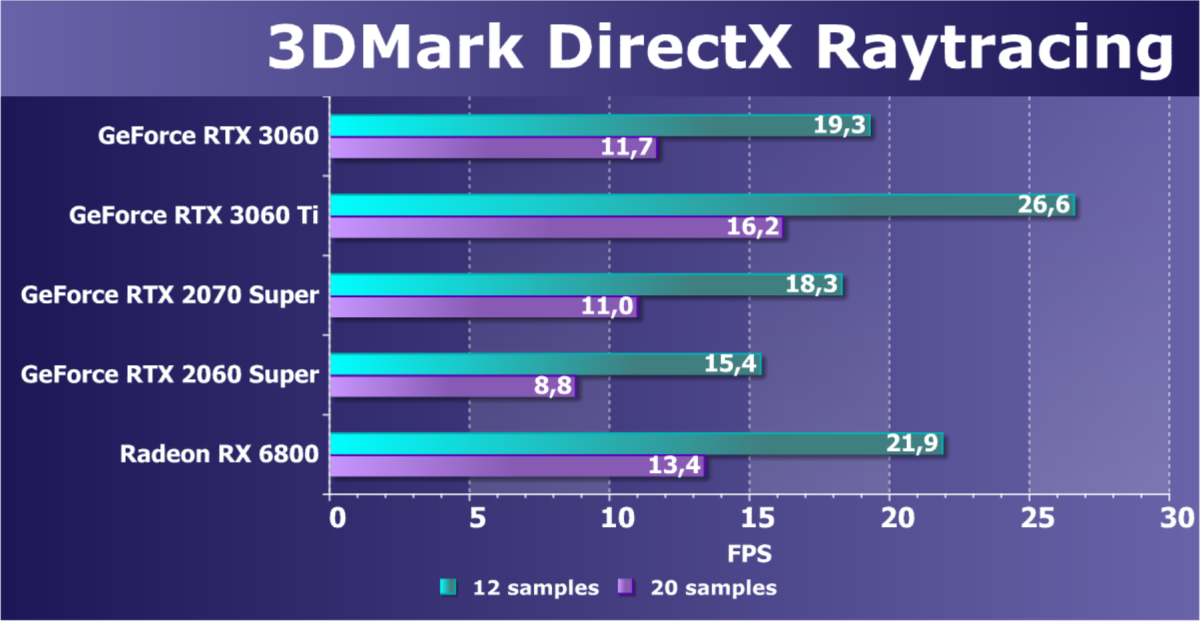 Рейтинг составлен по 4 тестам с применением технологии трассировки лучей и/или DLSS. На сегодня RT поддерживается ускорителями серий Nvidia GeForce RTX и AMD Radeon RX 6000. Этот рейтинг нормирован по самому слабому ускорителю в группе — GeForce RTX 2060 (то есть сочетание скорости и функций GeForce RTX 2060 приняты за 100%).