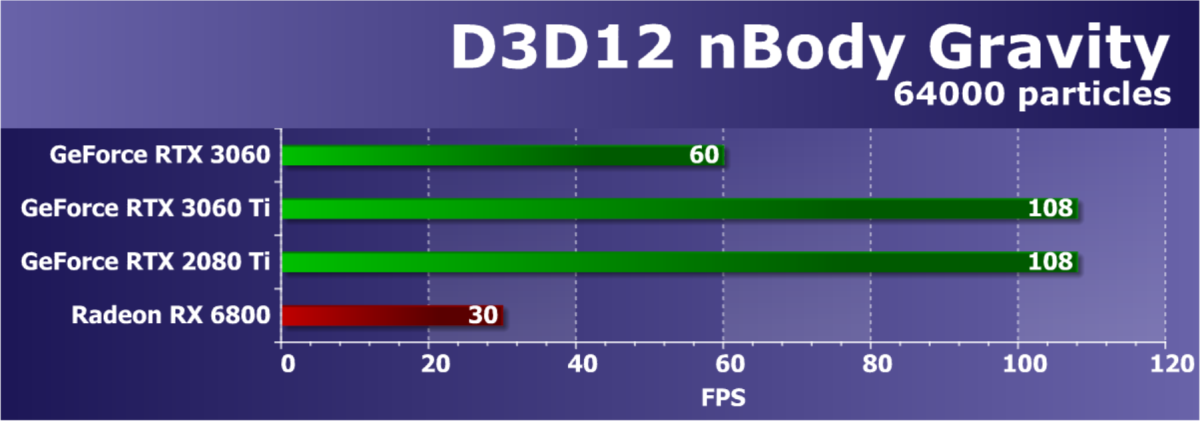 Из более-менее новых бенчмарков мы начали использовать несколько примеров, входящих в DirectX SDK и пакет SDK компании AMD (скомпилированные примеры применения D3D11 и D3D12), хотя и они тоже постепенно изживают себя, а также несколько разнообразных тестов для измерения производительности трассировки лучей, программной и аппаратной. В качестве полусинтетических тестов у нас также используется и несколько подтестов из популярного пакета 3DMark, включая Time Spy и другие.