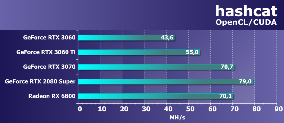 | 12 | RTX 3060 12 ГБ, 1807—1950/15000 | 56 | 420 | 75 000 |