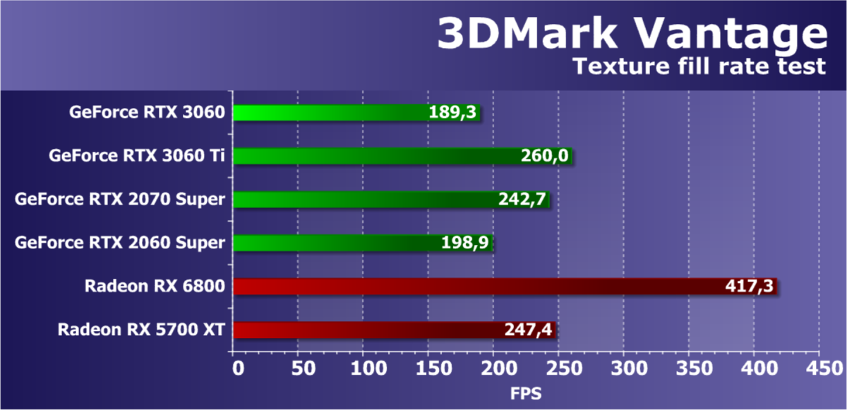 Мы полностью отказались от ранее активно использовавшихся нами тестов RightMark3D, так как они устарели слишком сильно, и на столь мощных GPU или не запускаются вообще, или упираются в различные ограничители, не загружая работой блоки графического процессора и не показывая его истинную производительность. А вот синтетические Feature-тесты из набора 3DMark Vantage мы пока что оставили в полном составе, так как заменить их попросту нечем, хотя и они уже изрядно устарели.