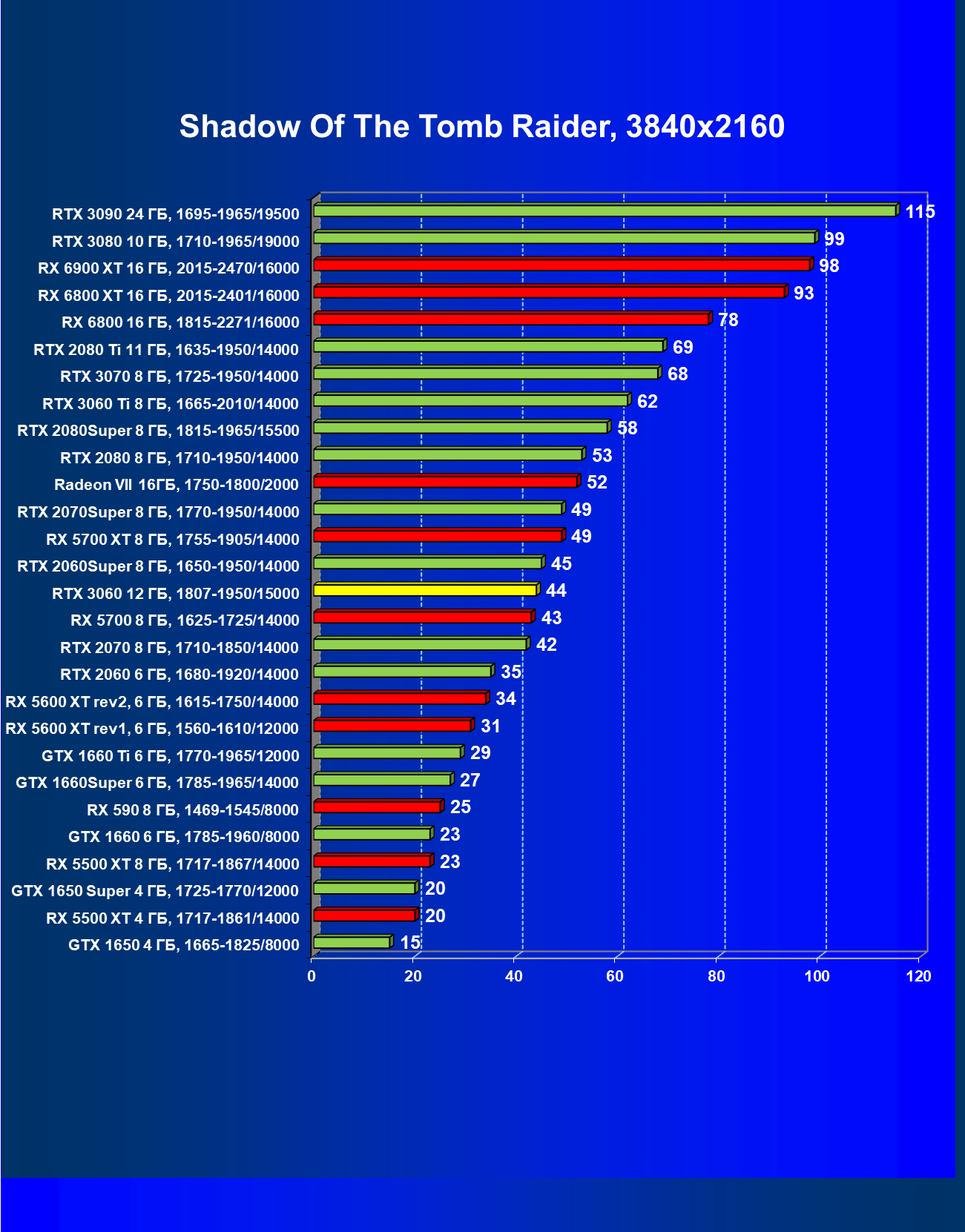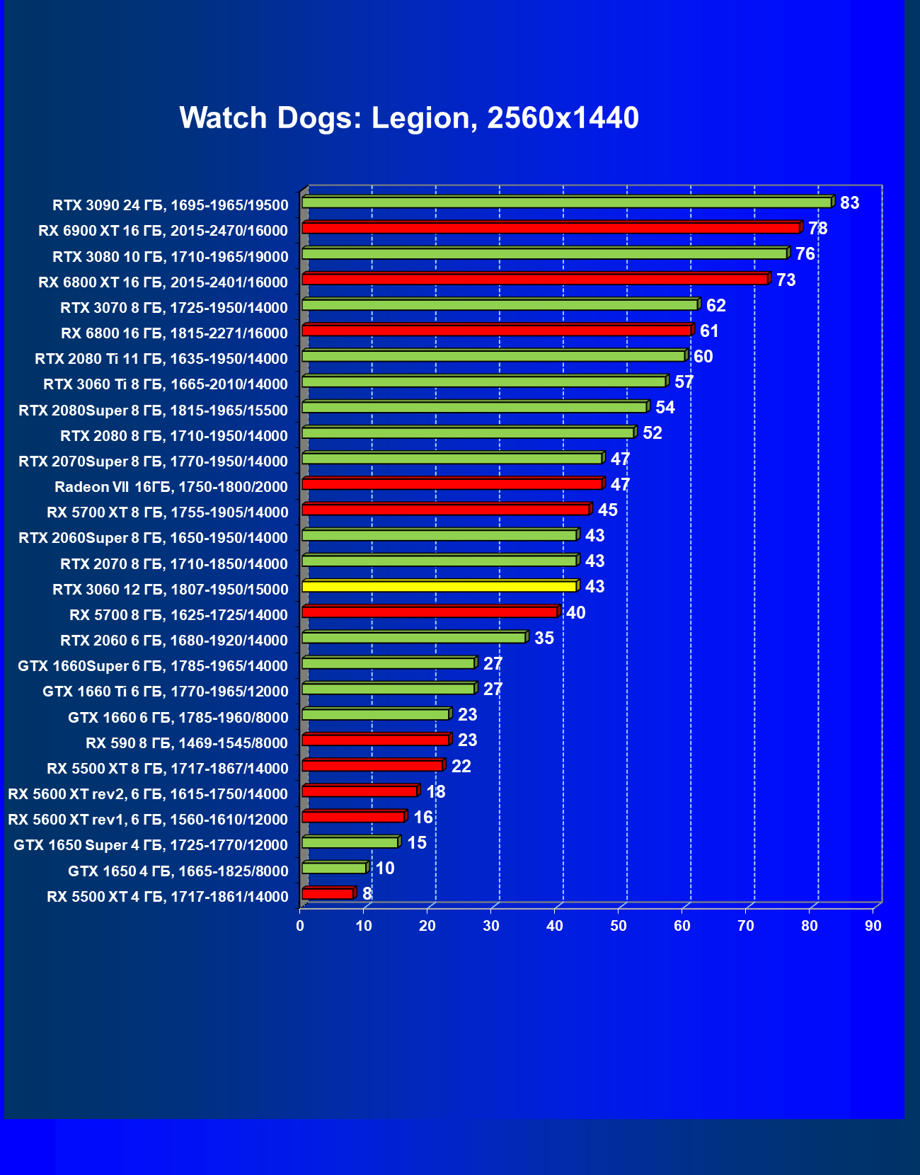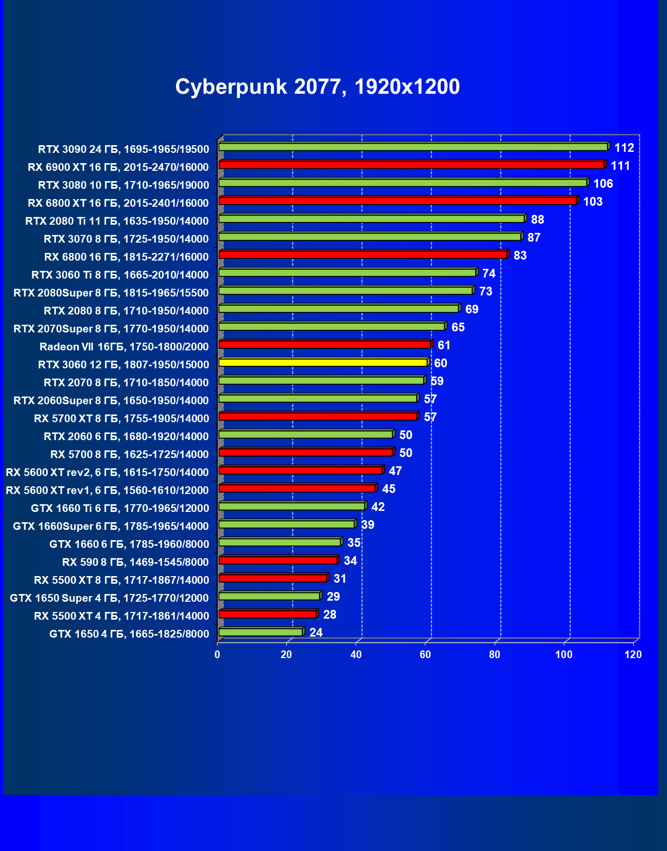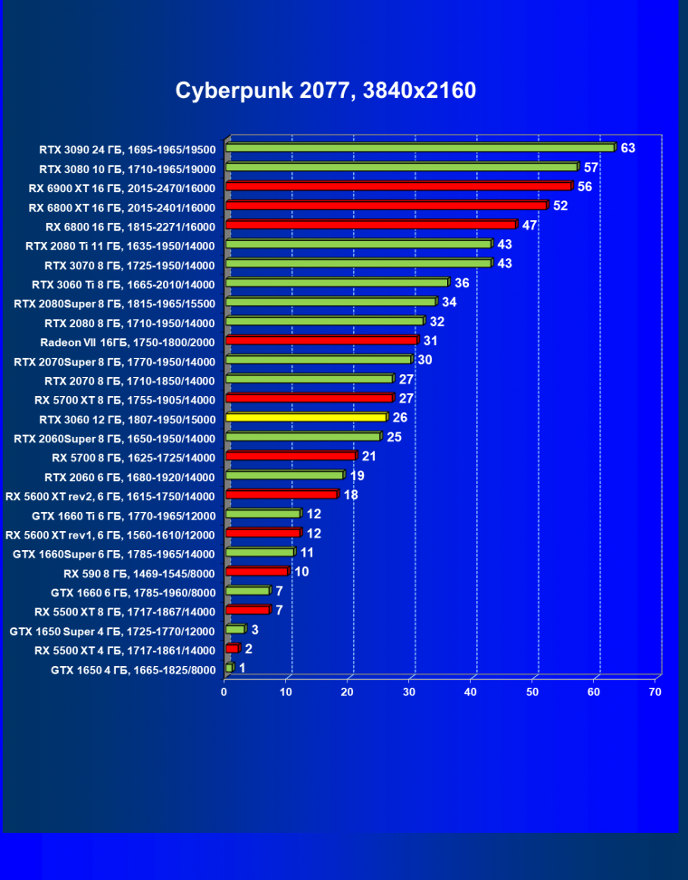 | 11 | RX 6800 16 ГБ, 1815—2271/16000 | 17 | 190 | 110 000 |