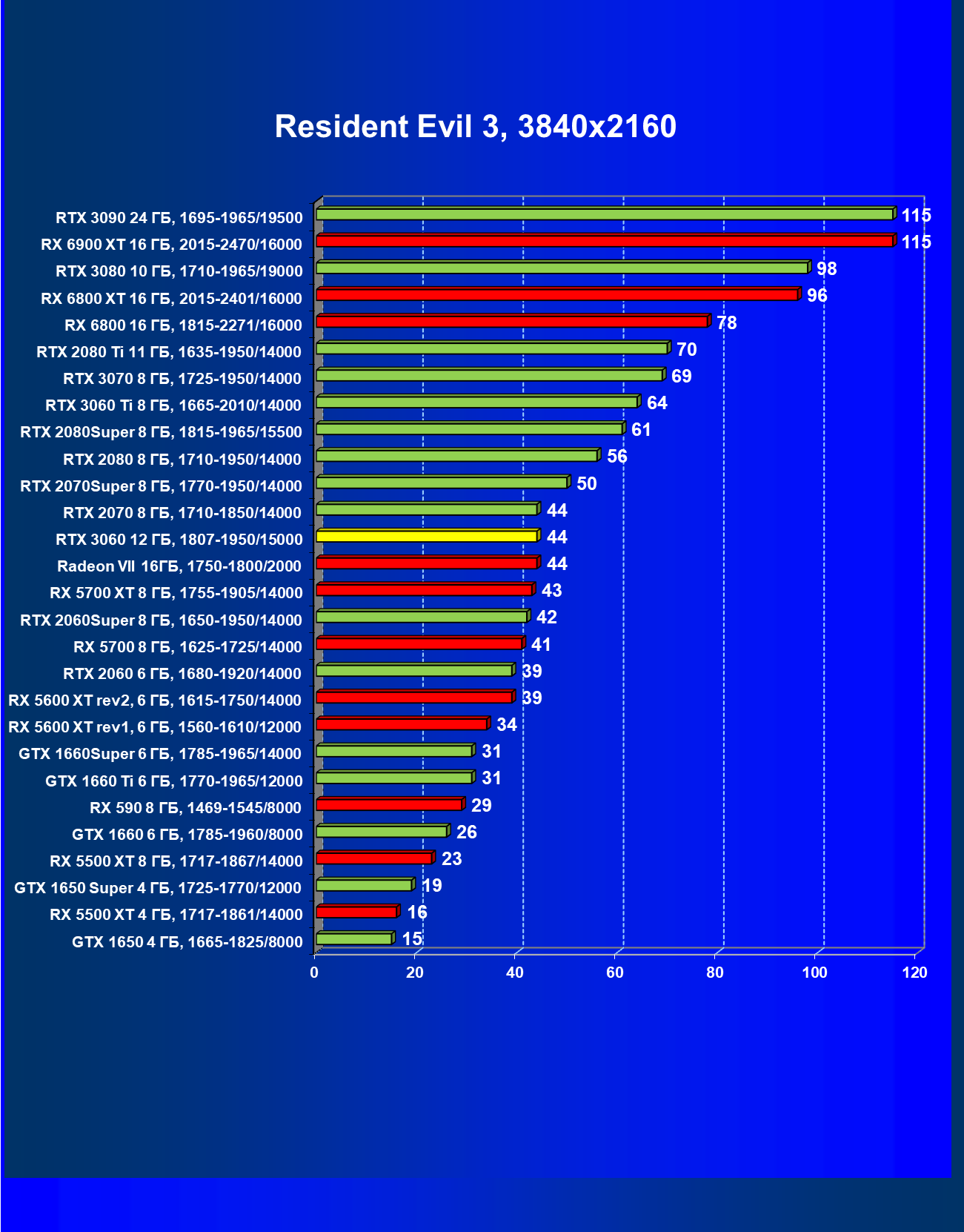 Для анализа производительности новой видеокарты GeForce RTX 3060 мы выбрали большое количество видеокарт компании Nvidia из двух последних поколений. Для сравнения с прошлым поколением мы взяли RTX 2060/2070/2080 в версиях Super и RTX 2080 Ti — они будут выбираться в зависимости от результатов новинки. Также на диаграммах есть и результаты современных моделей RTX 3060 Ti и RTX 3070 более высокого уровня — чтобы определить, насколько медленнее них получилась младшая модель архитектуры Ampere.