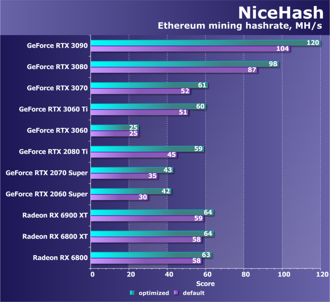 Следует особо упомянуть разрекламированное Nvidia ограничение GeForce RTX 3060 в майнинге криптовалют с помощью самого популярного GPU-алгоритма, на котором базируется тот же Ethereum (частные майнеры, скупившие все видеокарты, в основном его и «копают»). Да, ограничение есть и работает, но трудно сказать, как долго продержится эта защита. Кроме того, новые карты могут использовать для добычи других криптовалют. Мы, геймеры, очень надеемся, что защита выдержит и охладит пыл майнеров, и в дальнейшем будут выходить игровые видеокарты с аналогичной защитой, а для майнеров будут выпускаться свои решения.