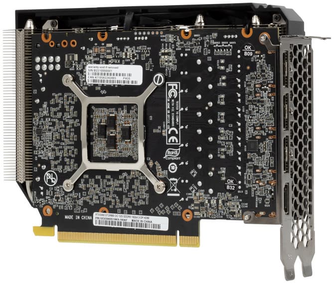 Что касается конкретной протестированной видеокарты Palit GeForce RTX 3060 StormX OC (8 ГБ), то перед нами, по сути, самый простой вариант GeForce RTX 3060, предназначенный для компактных системных блоков. Карта не только короткая, но и занимает всего два слота в системном блоке. Конечно же, как у многих подобных моделей, работа карты Palit сопровождается заметным шумом системы охлаждения при максимальной загрузке.