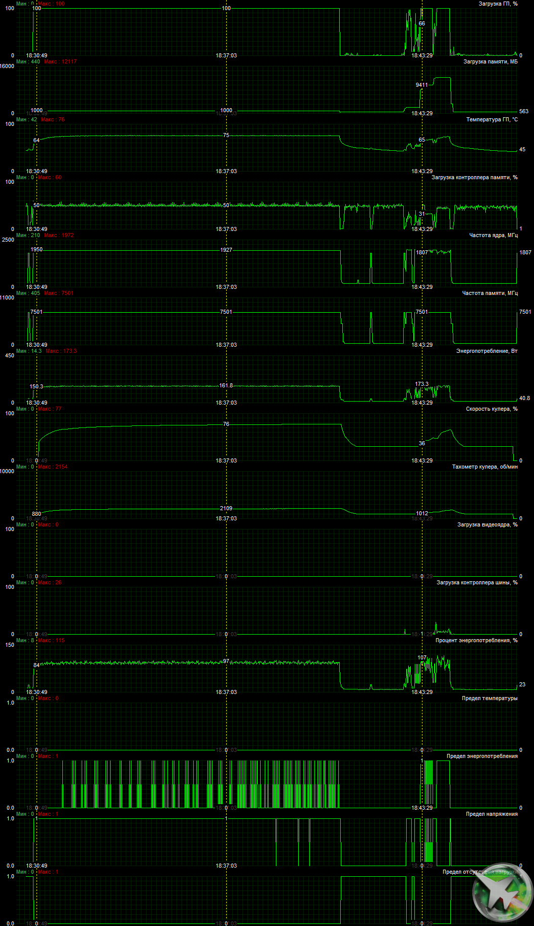 | 06 | RTX 3060 12 ГБ, 1807—1950/15000 | 19 | 140 | 75 000 |