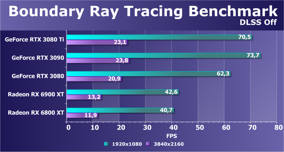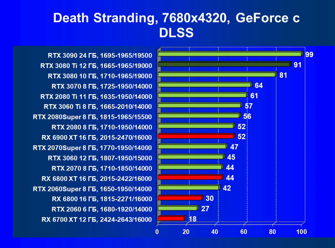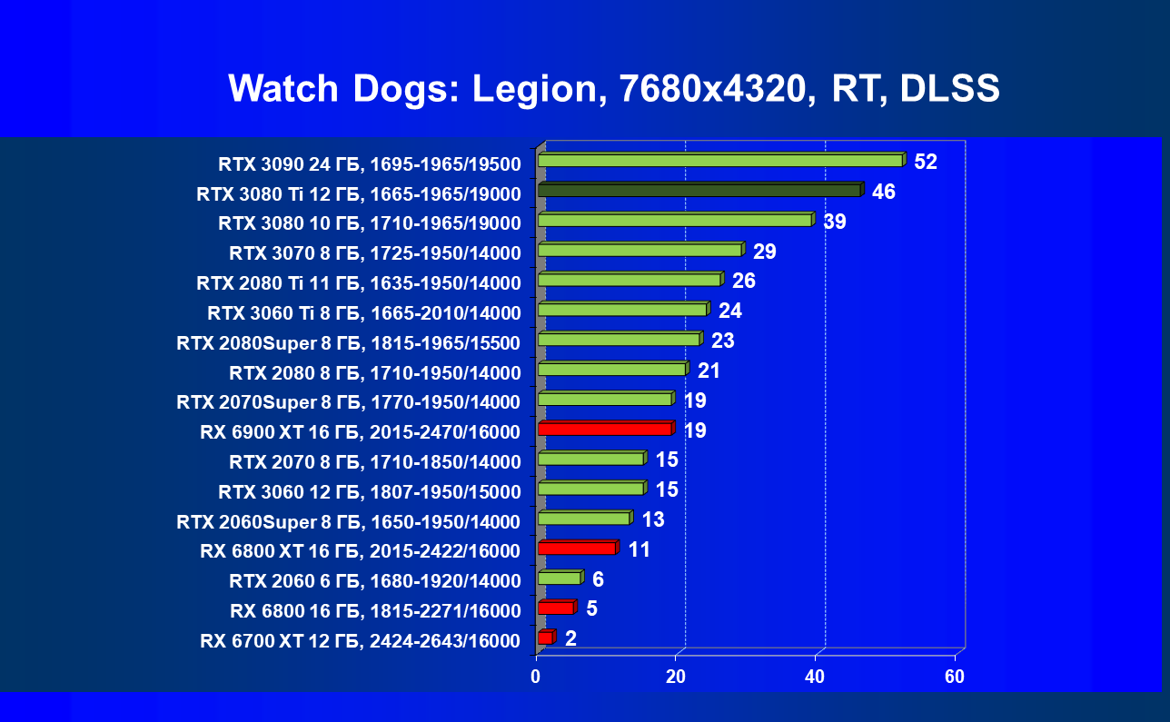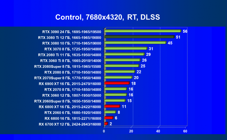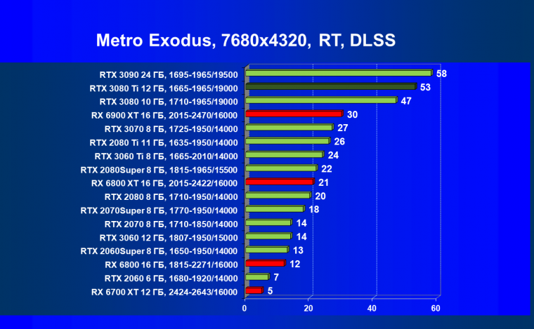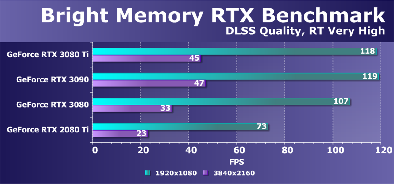Учитывая, что RTX 3080 Ti по производительности находится прямо рядом с RTX 3090, а последний мы уже исследовали в работе в разрешении 8К, то логично было бы протестировать и новинку в этом супер-огромном разрешении, разумеется, с применением DLSS и трассировки лучей.