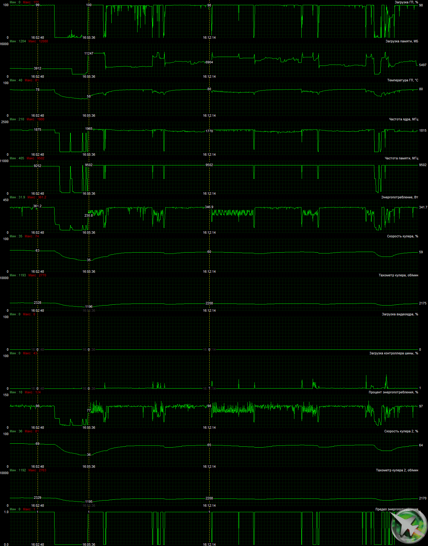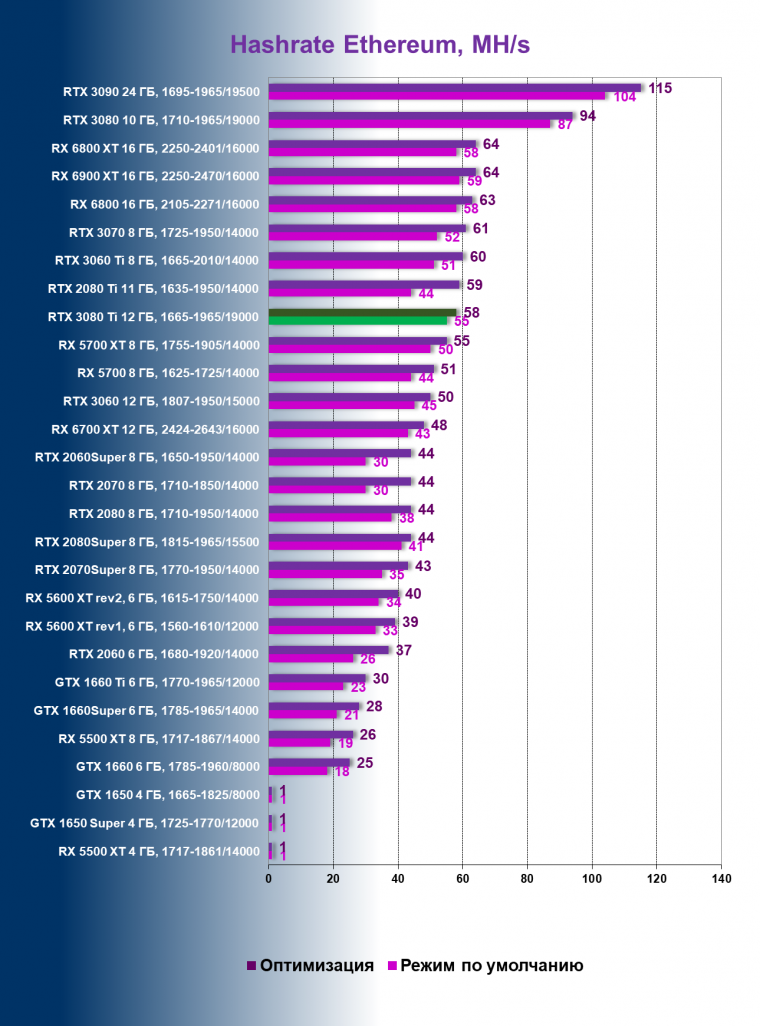 | 01 | RTX 3080 Ti 12 ГБ, 1665—1965/19000 | 20 | 405 | 200 000 |