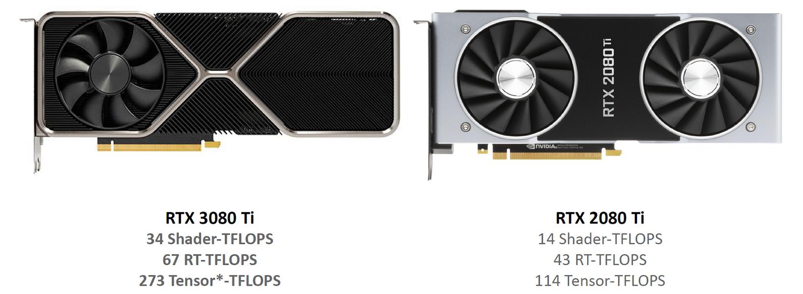 Напоследок давайте кратко сравним некоторые теоретические показатели производительности GeForce RTX 3080 Ti и RTX 2080 Ti — это даст нам понимание того, насколько быстрее стало решение нового семейства по сравнению с аналогичной по позиционированию картой из предыдущего поколения.