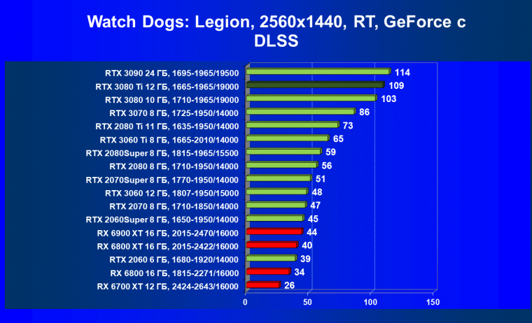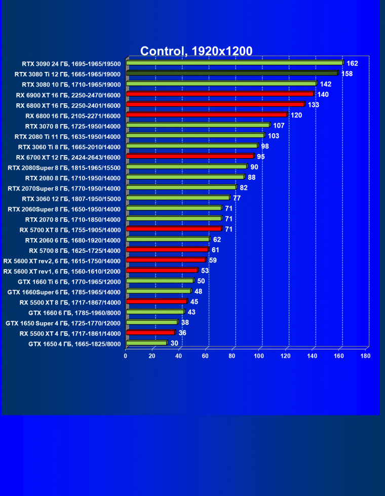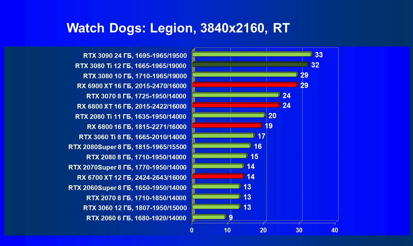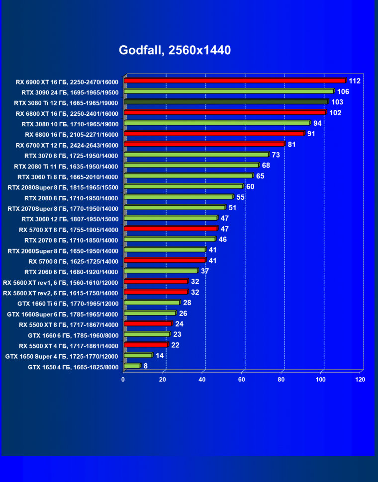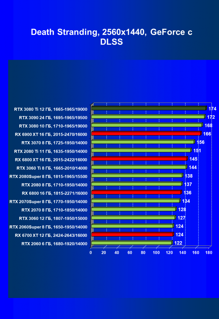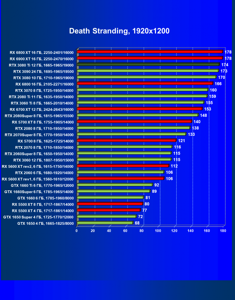 Зато у решений AMD больше видеопамяти — 16 ГБ против 12 ГБ, хотя в играх в обозримом будущем это вряд ли как-то скажется. В отличие от профессионального применения для создания цифрового контента, в которых каждый гигабайт на счету. Но у Nvidia там есть более мощная RTX 3090 с 24 ГБ памяти, лучше подходящая для профессиональных задач. Ну а 12 ГБ в случае RTX 3080 Ti можно считать оптимальным объемом видеопамяти, с учетом ширины шины.