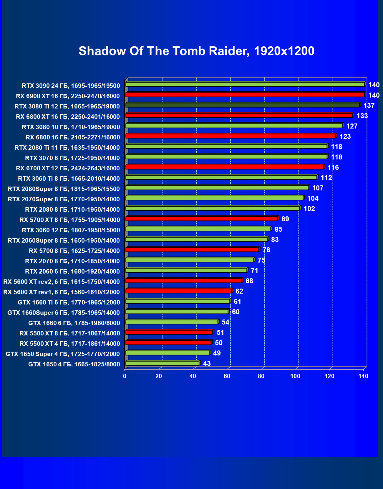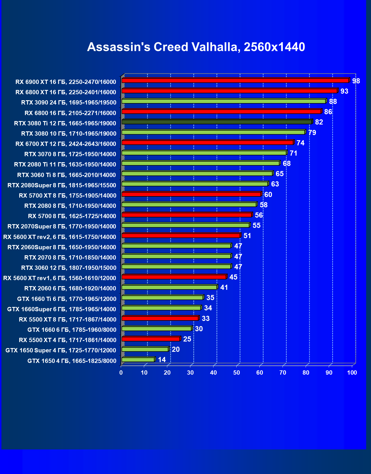 | 02 | RX 6900 XT 16 ГБ, 2015—2470/16000 | 17 | 285 | 165 000 |