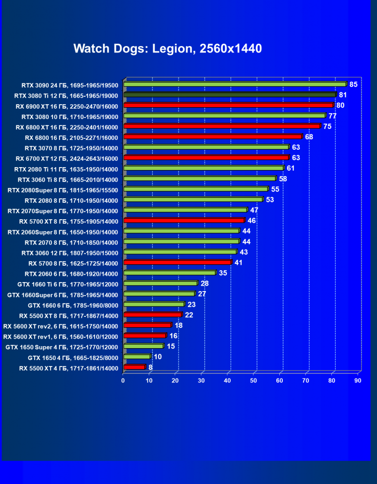 | 10 | RX 6800 XT 16 ГБ, 2015—2422/16000 | 160 | 10 | 160 000 |