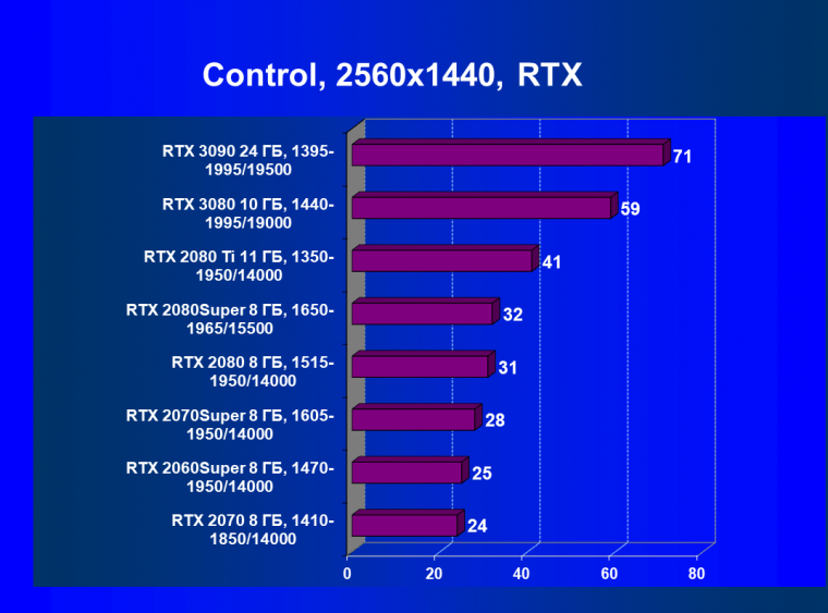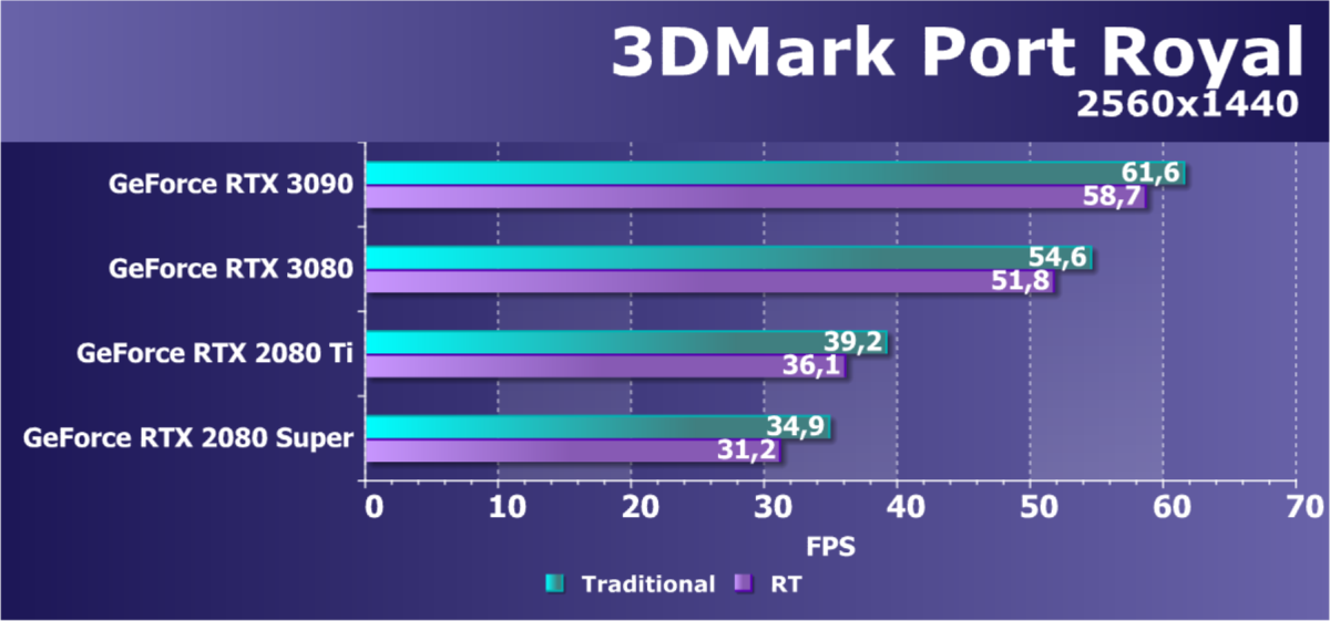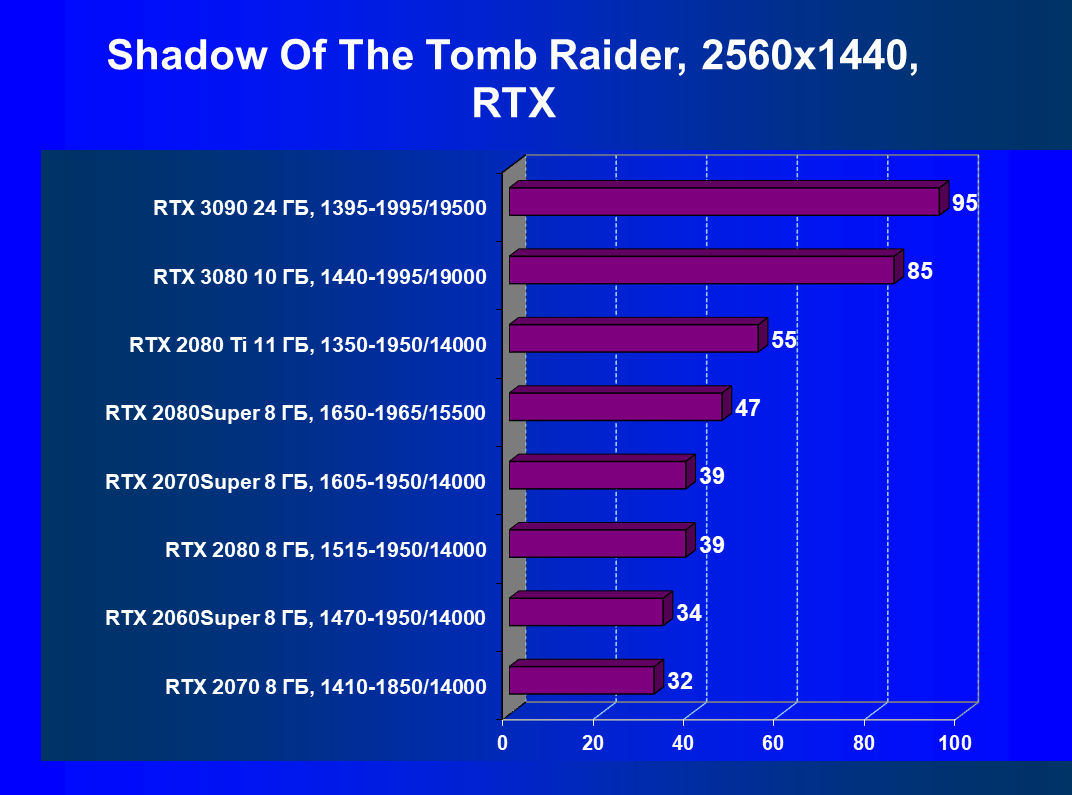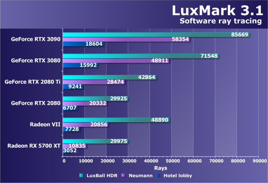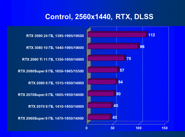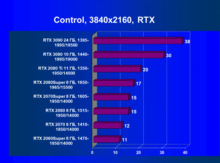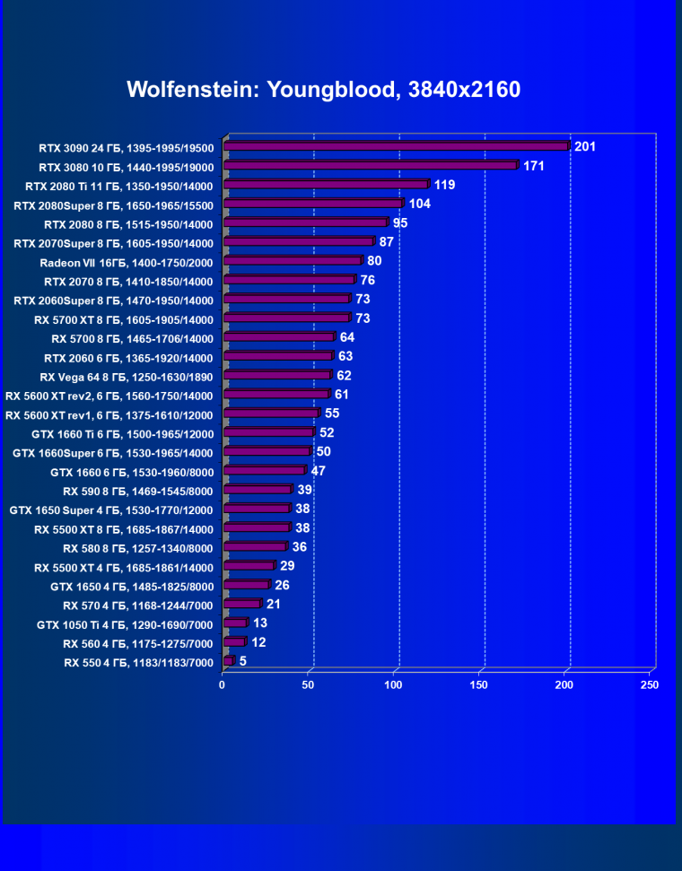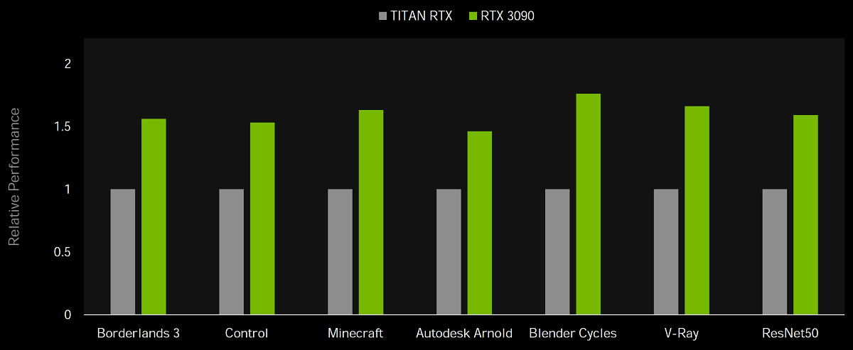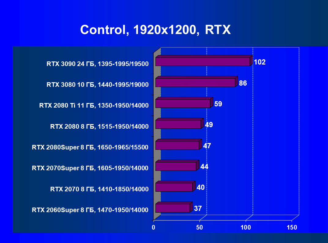 Полагаем, что комментарии излишни, и снова приветствуем нового лидера 3D-графики игрового класса! Но все же отметим, что GeForce RTX 3090 позиционируется не только для игр, поэтому чисто игровой флагман на сегодня — GeForce RTX 3080.