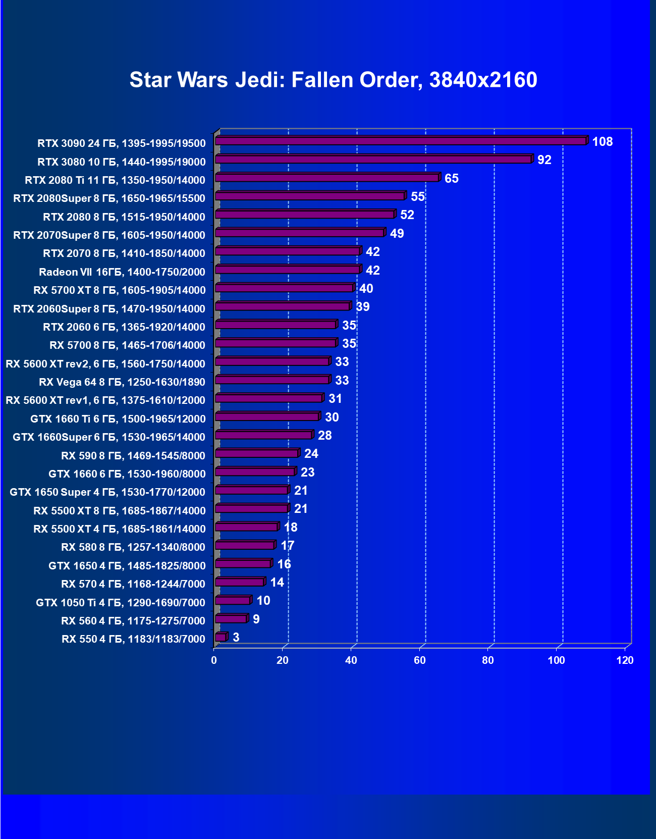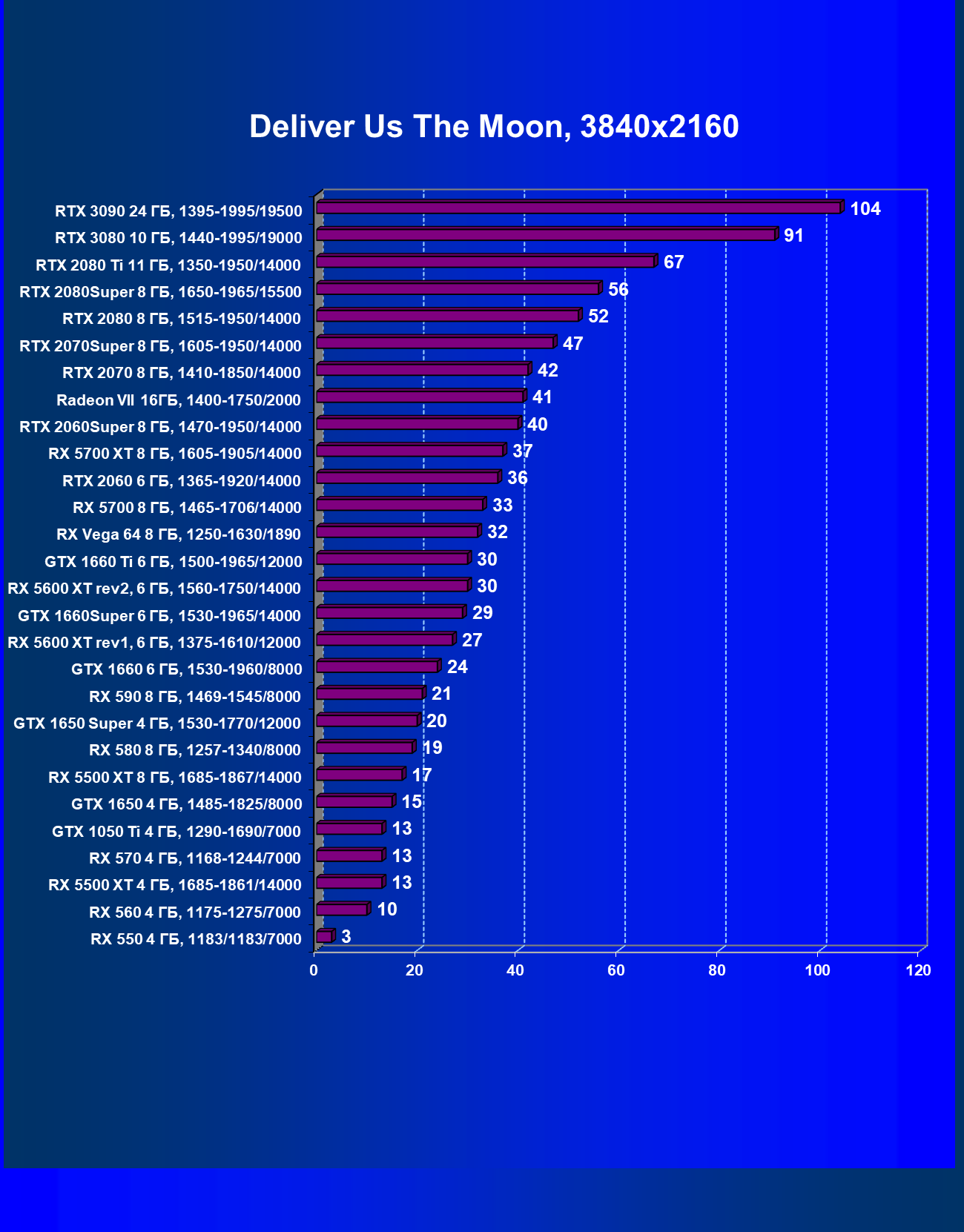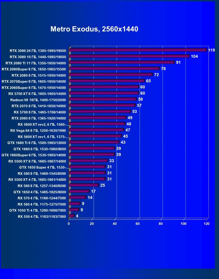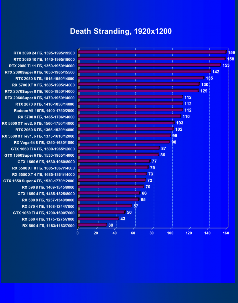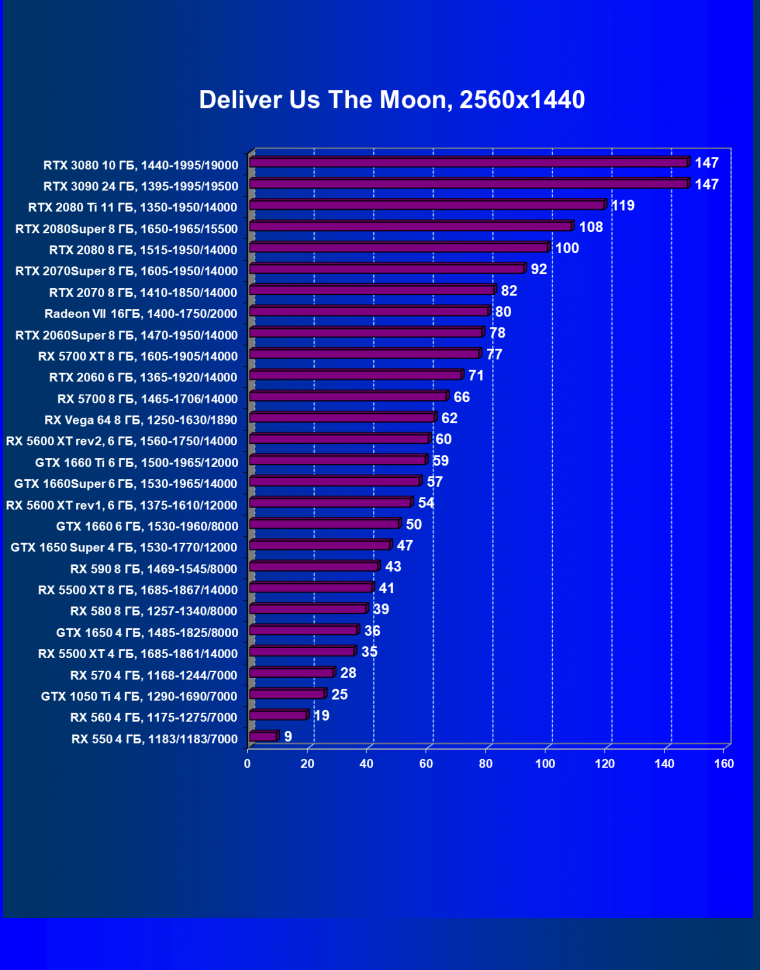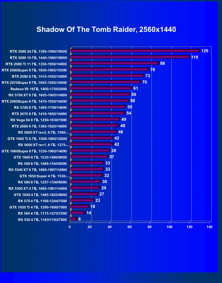 Полагаем, что комментарии излишни, и снова приветствуем нового лидера 3D-графики игрового класса! Но все же отметим, что GeForce RTX 3090 позиционируется не только для игр, поэтому чисто игровой флагман на сегодня — GeForce RTX 3080.
