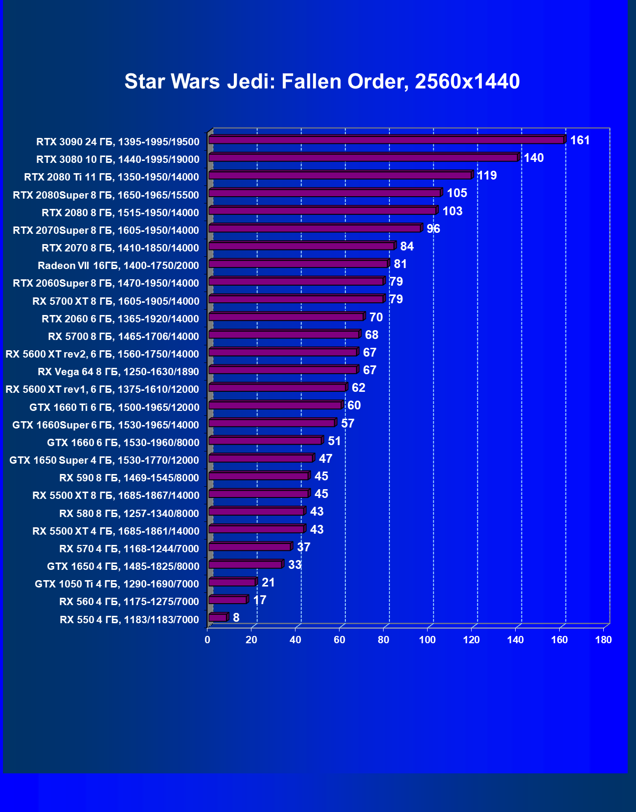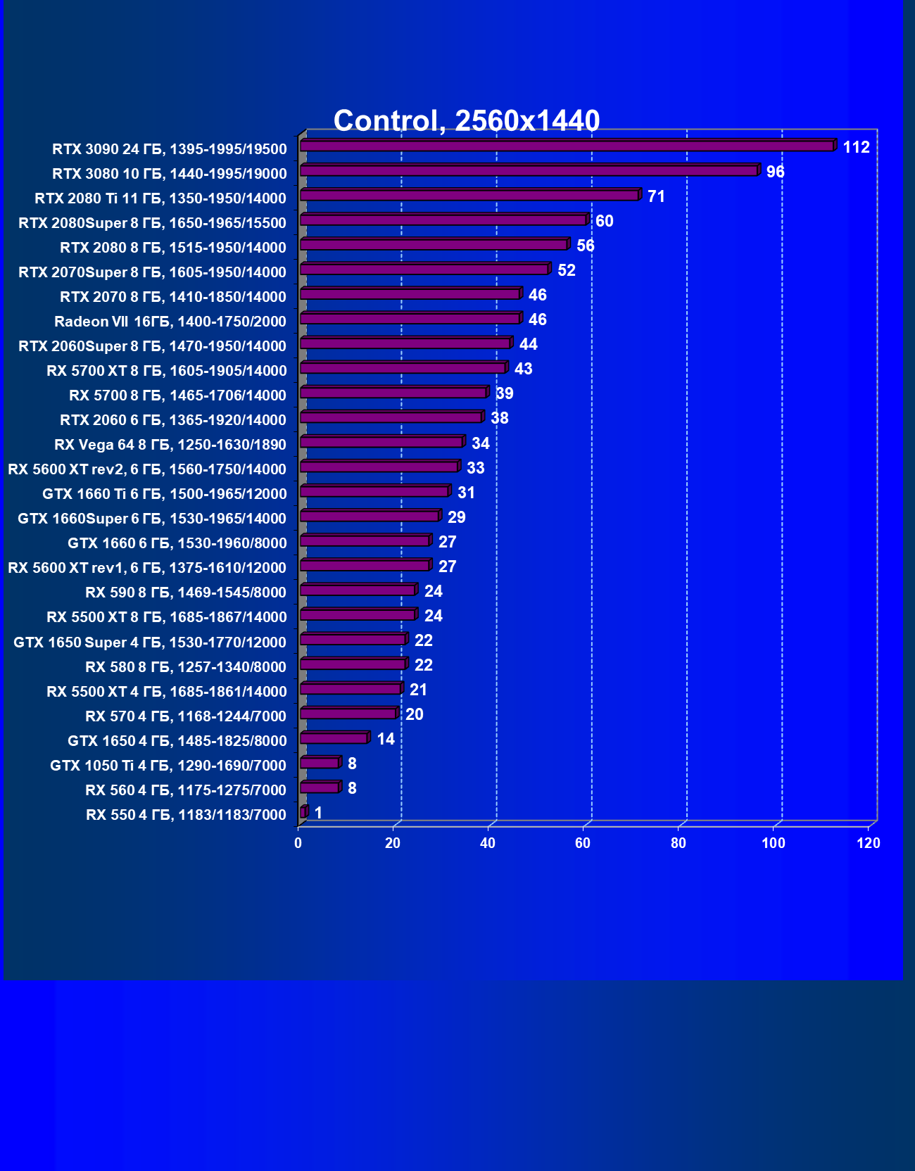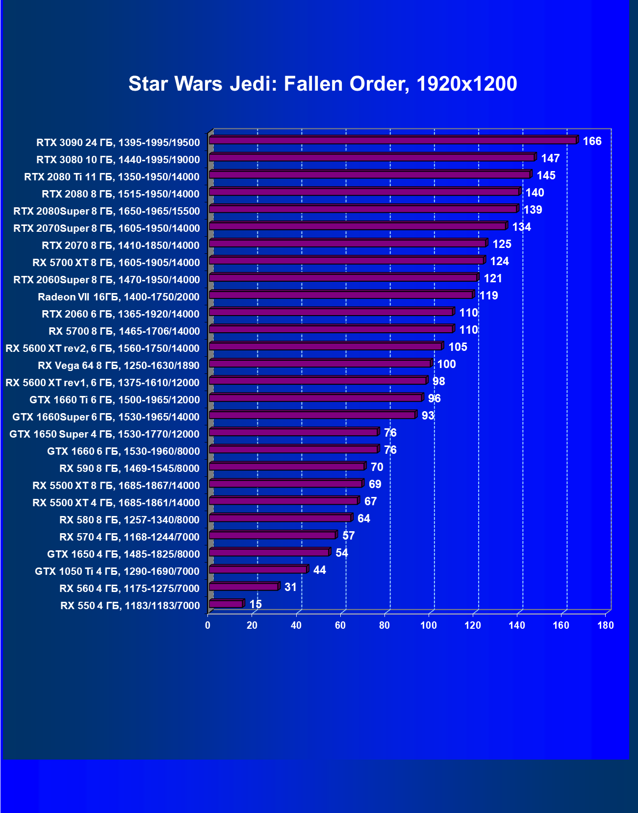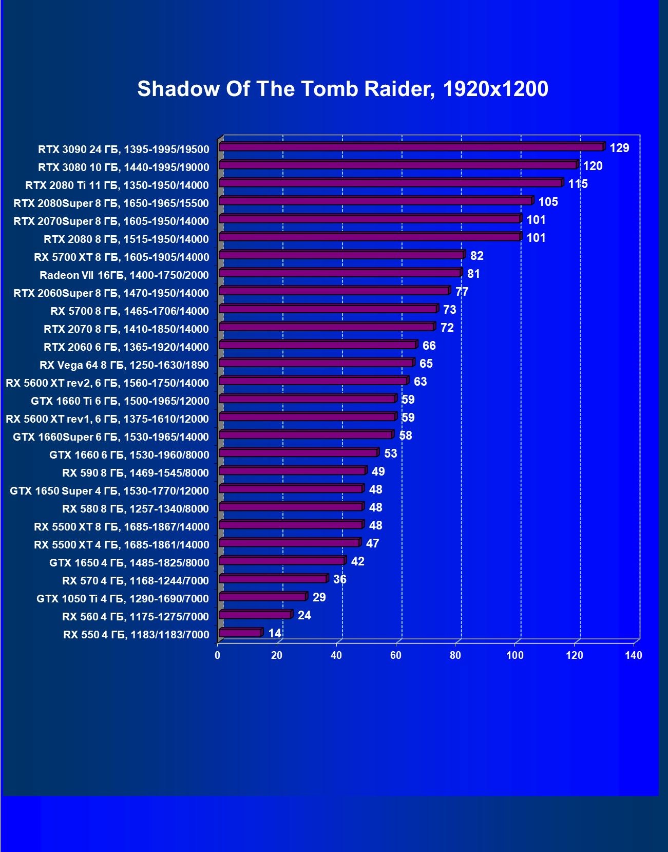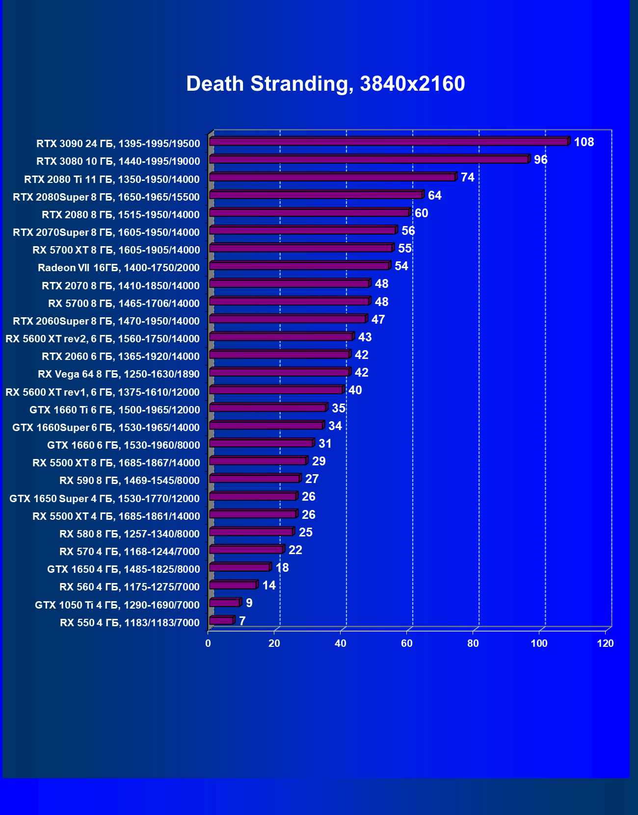 Полагаем, что комментарии излишни, и снова приветствуем нового лидера 3D-графики игрового класса! Но все же отметим, что GeForce RTX 3090 позиционируется не только для игр, поэтому чисто игровой флагман на сегодня — GeForce RTX 3080.