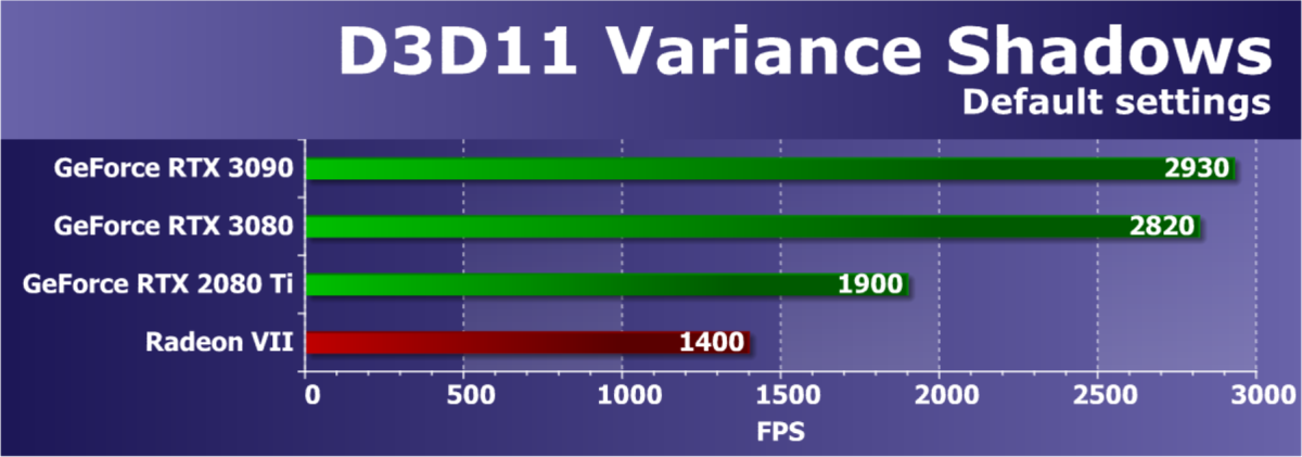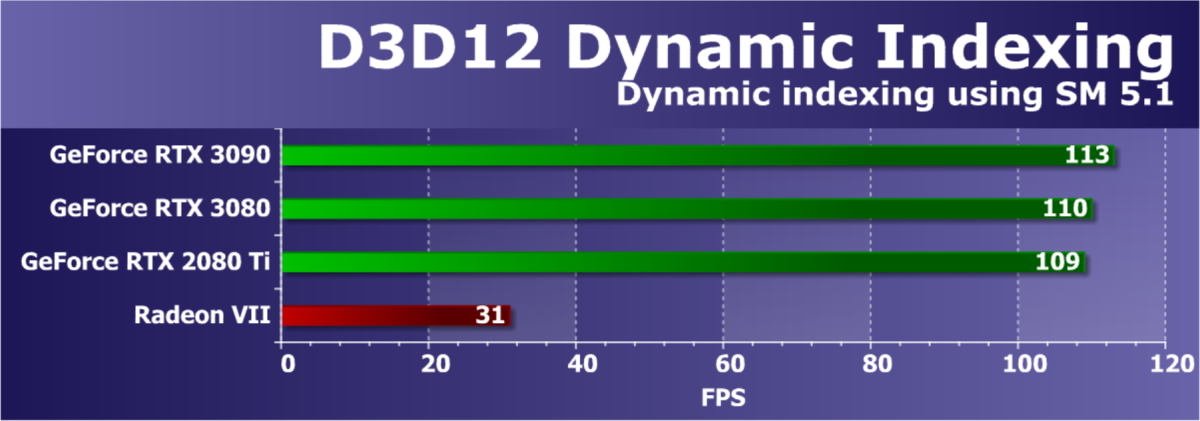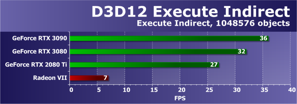 Из более-менее новых бенчмарков мы начали использовать несколько примеров, входящих в DirectX SDK и пакет SDK компании AMD (скомпилированные примеры применения D3D11 и D3D12), а также несколько разнообразных тестов для измерения производительности трассировки лучей, программной и аппаратной. В качестве полусинтетического теста у нас также используется и довольно популярный 3DMark Time Spy, а также некоторые другие — например, DLSS и RTX.