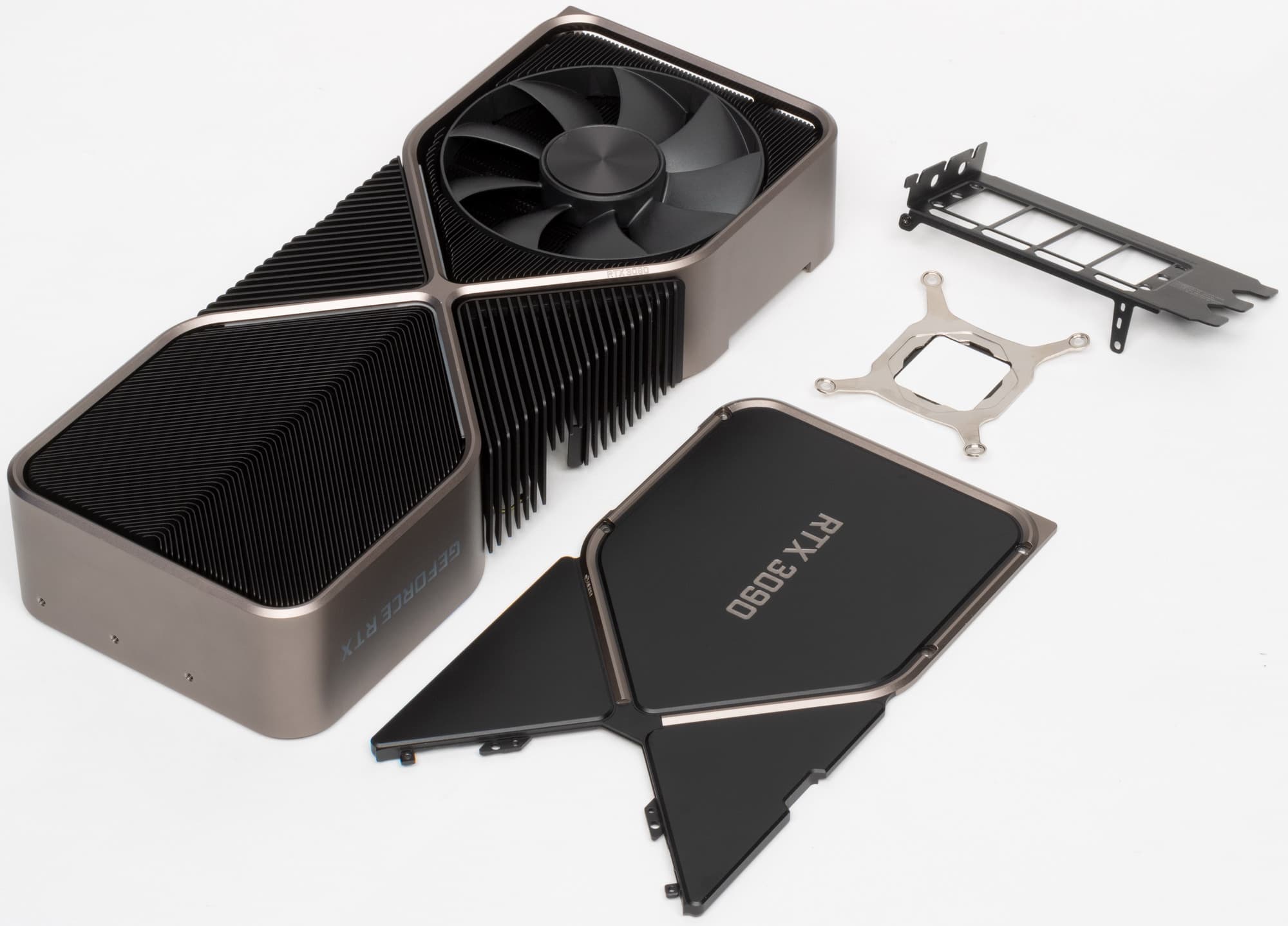 О конкурентах со стороны компании AMD пока что сказать нечего. Radeon VII давно устарел и снят с производства, Radeon RX 5700 XT является решением более низкого уровня, а больше у них ничего и нет. Так что ждем решений на базе архитектуры RDNA2, и особенно любопытен будет большой чип «Big Navi», хотя и далеко еще не факт, что и он сможет конкурировать с GeForce RTX 3090.