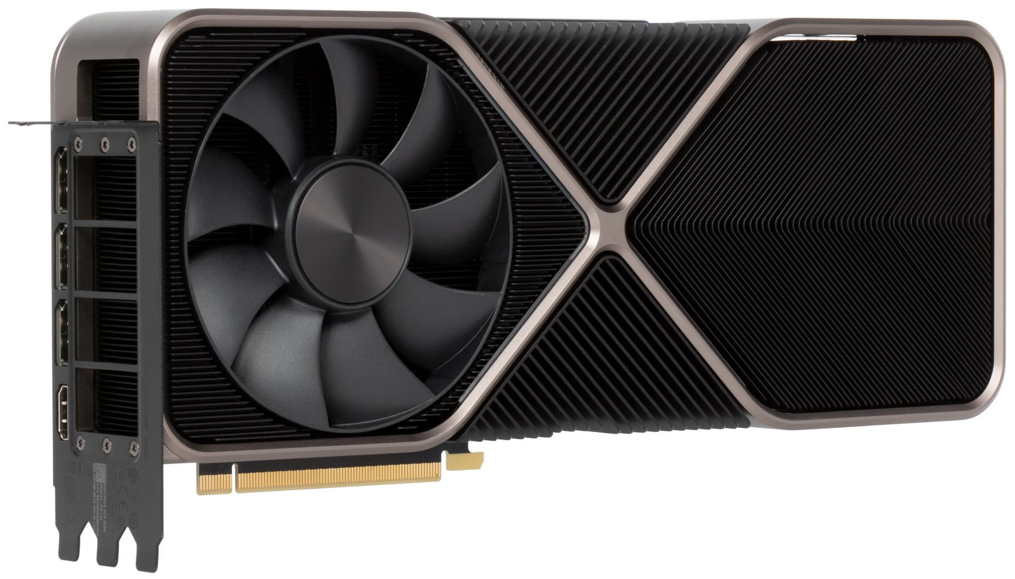 Надо отметить наличие у видеокарты нестандартного пока 12-контактного разъема питания, однако для него имеется переходник в комплекте поставки, а производители БП вскоре предоставят соответствующие решения. Система охлаждения, помимо того, что не слишком шумная (а без нагрузки вообще бесшумная), еще и частично удаляет нагретый воздух за пределы системного блока — ранее этим могли похвастать лишь видеокарты с так называемыми радиальными вентиляторами, которые были, как правило, очень шумными. Добавим еще пару слов о подставках (кронштейнах) для установки карты, которыми стали снабжать свои GeForce RTX 3080/3090 некоторые производители. В данном случае подставка, на наш взгляд, не нужна: у видеокарты очень широкая крепежная планка под три винта на заднюю панель корпуса, а радиатор кулера образует большую металлическую раму, так что карта не будет прогибаться под своей тяжестью и не будет испытывать слот PCIe на прочность. Кстати, карты GeForce RTX 30 поддерживают PCIe 4.0, но об этом мы как-нибудь поговорим в одном из обзоров серийных карт.