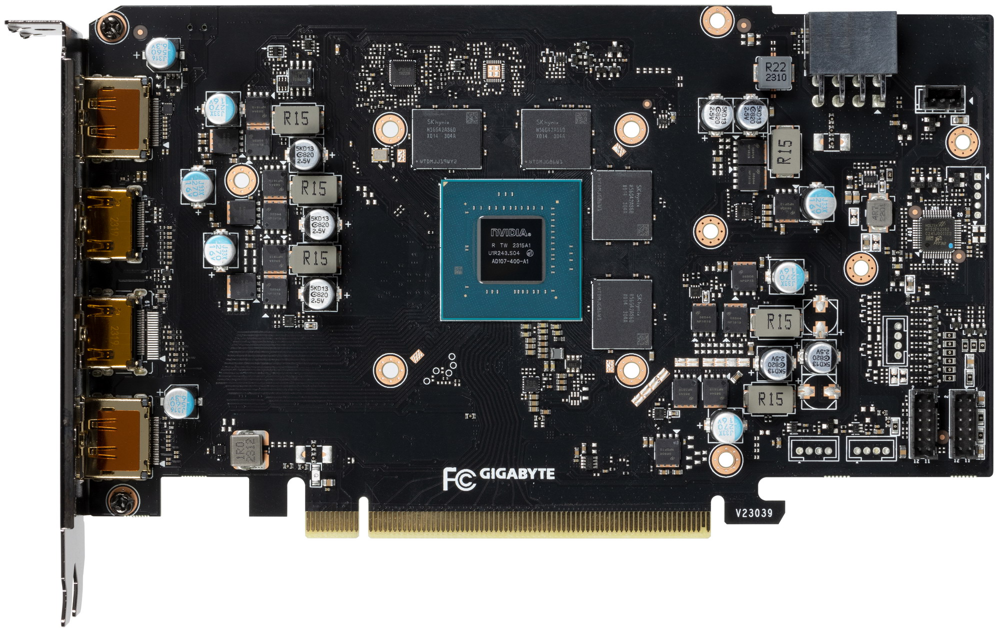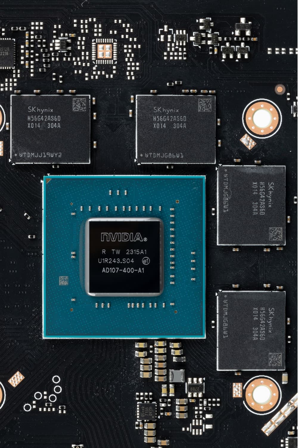 Графический процессор AD107 имеет три кластера обработки графики GPC, они содержат по четыре кластера обработки текстур TPC, каждый из которых имеет по два потоковых мультипроцессора SM. Каждый мультипроцессор, в свою очередь, содержит по 128 CUDA-ядер в четырех разделах. Половина из них умеют вычислять данные в формате FP32, а другие поддерживают FP32 или INT32 — есть возможность параллельной обработки FP32 и INT32. Каждый мультипроцессор SM также содержит RT-ядро третьего поколения, четыре тензорных ядра четвертого поколения, кэш-память и четыре текстурных блока TMU.