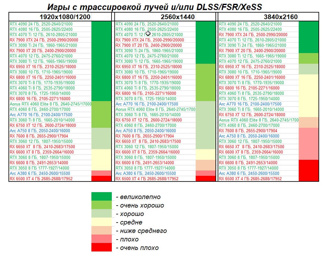 - Вариант рейтинга полезности с включением RT/DLSS/FSR/XeSS