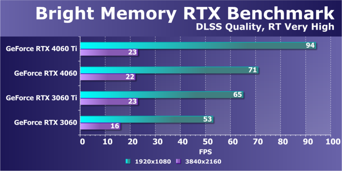 Отметим еще раз, что GeForce RTX 4060 подходит для игры в разрешении 1080p с максимальным качеством графики без трассировки лучей и может обеспечить приемлемый комфорт в играх с поддержкой RT/DLSS/FSR/XeSS в том же разрешении.