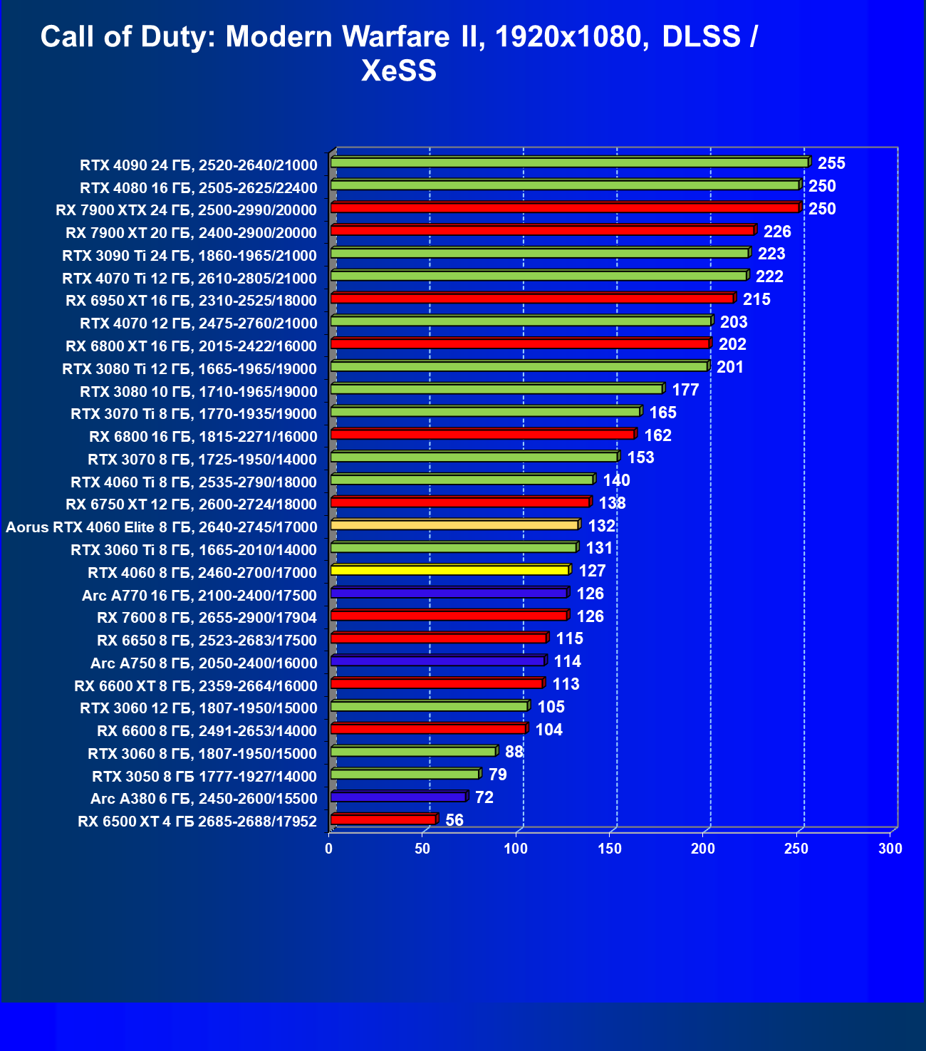 | 06 | RX 6600 XT 8 ГБ, 2359—2664/16000 | 88 | 254 | 29 000 |