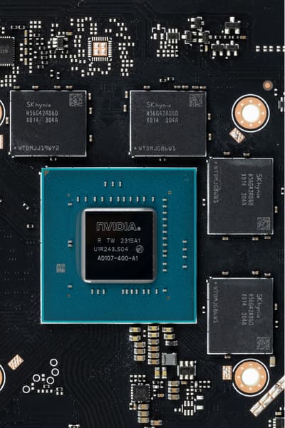 Модель GeForce RTX 4060 основана на графическом процессоре AD107, который производится на фабриках TSMC с использованием специализированного 5-нанометрового техпроцесса под названием 4N. Это самый маленький по размеру чип в текущем поколении, на котором основана только модель RTX 4060 и это довольно неожиданное решение с учетом того, что та же RTX 3060 использовала GA106 (а на базе аналогичного AD106 основана уже более мощная RTX 4060 Ti). Но даже при том, что это самый маленький GPU поколения, он имеет более чем наполовину больше транзисторов по сравнению с GA106 (RTX 3060) и даже чуть больше их, чем у GA104. Младший графический процессор имеет площадь 159 мм² и состоит из 18,9 млрд транзисторов — сравните с 190 мм² и 22,9 млрд у AD106, на котором основана RTX 4060 Ti — для Nvidia оказалось выгодно делать GPU с таким небольшим отличием по сложности.