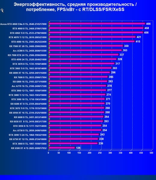 | 23 | RX 6650 XT 8 ГБ, 2410—2683/17500 | 274 | 86 | 32 000 |