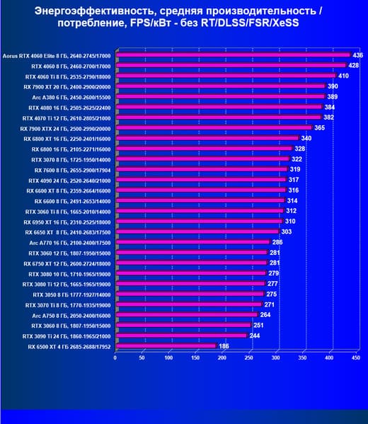 | 19 | RX 7600 8 ГБ, 2655—2900/17904 | 289 | 82 | 35 000 |