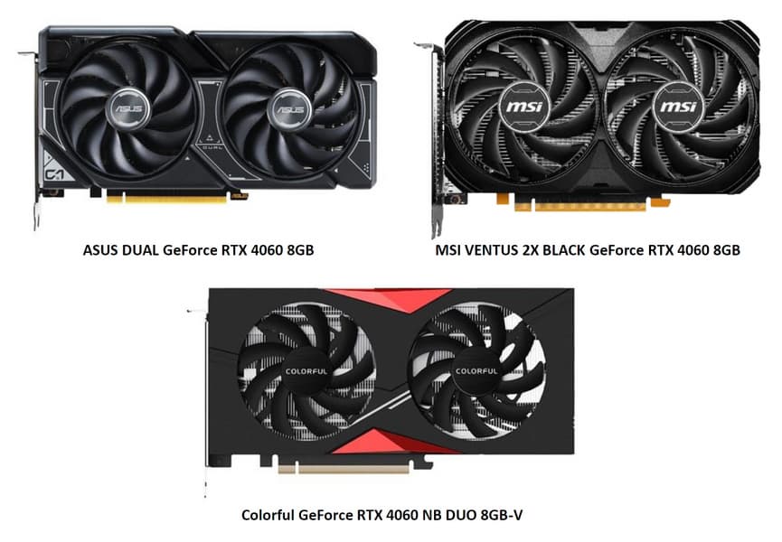 В отличие от модели с приставкой Ti, GeForce RTX 4060 не существует в виде Founders Edition, а картинка в начале статьи — имитация. Вероятно, в Nvidia не видят особого смысла в выпуске своей версии недорогой видеокарты — ну, или хотят дать больше возможностей партнерам. Которые, к слову, выпустили уже довольно много различных вариантов RTX 4060, с отличающимся дизайном и системами охлаждения, также встречаются и фабрично разогнанные варианты.