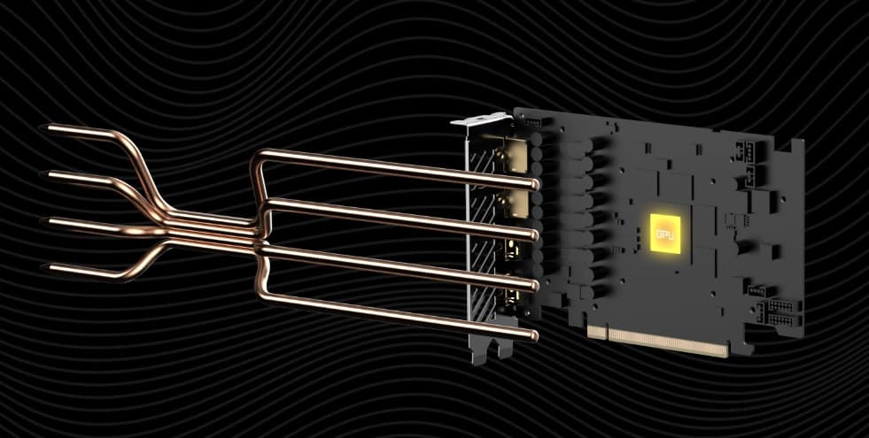 Также отметим поддержку стандарта HDMI 2.1, позволяющего выводить 4K-изображение со 120 FPS или 8K-разрешение при помощи одного кабеля, поддержку аппаратного декодирования видеоданных в формате AV1, технологию RTX IO, способную обеспечить быструю передачу и распаковку данных с накопителей прямо в GPU, а также технологию снижения задержек Reflex, полезную для киберспортсменов.