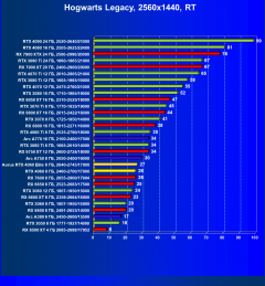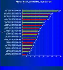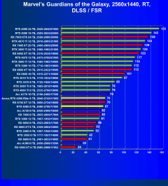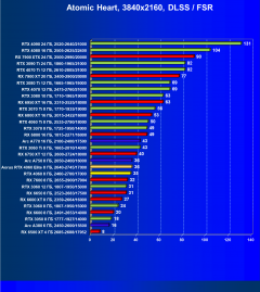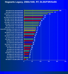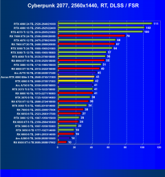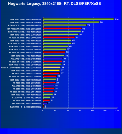 Результаты тестов со включенной аппаратной трассировкой лучей и/или DLSS/FSR/XeSS в разрешениях 1920×1080, 2560×1440 и 3840×2160