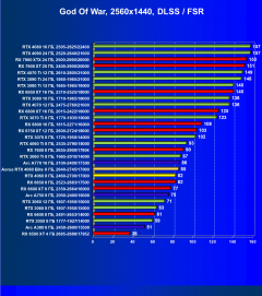 Рейтинг составлен по 9 тестам, в которых используется технология трассировки лучей и одновременно технология Nvidia DLSS, AMD FSR или Intel XeSS. Этот рейтинг нормирован по самому слабому ускорителю в данной группе — Radeon RX 6500 XT (то есть сочетание скорости и функций Radeon RX 6500 XT приняты за 100%).