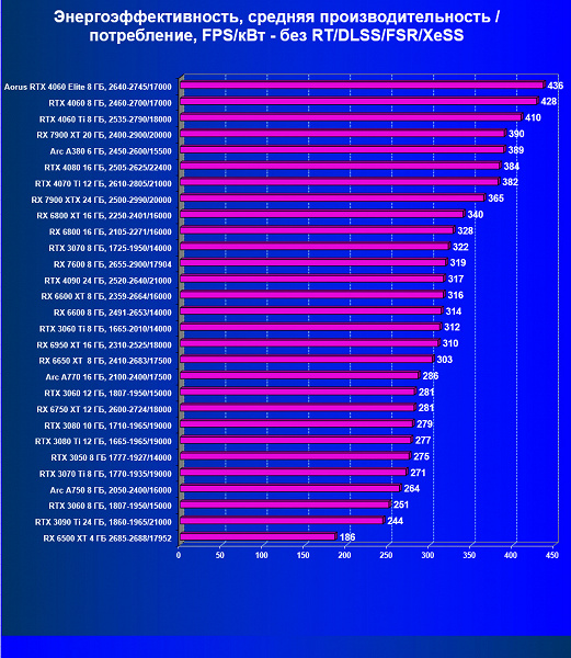 Только в плане энергоэффективности GeForce RTX 4060 может похвастаться очень высокими показателями.