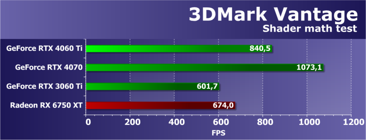 Прямого конкурента для новинки компания AMD в своем текущем поколении еще не выпустила, поэтому нам пришлось взять два варианта из прошлого, близкие по цене. Мы сравним новинку с условными конкурентами на основе предыдущей архитектуры в виде Radeon RX 6800 и RX 6750 XT — первая модель продается чуть дороже RTX 4060 Ti, а вторая чуть дешевле. На деле же рассматриваемой сегодня видеокарте в будущем придется конкурировать с решениями на основе RDNA3, но их пока не видно на горизонте.