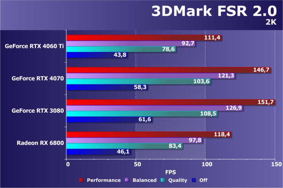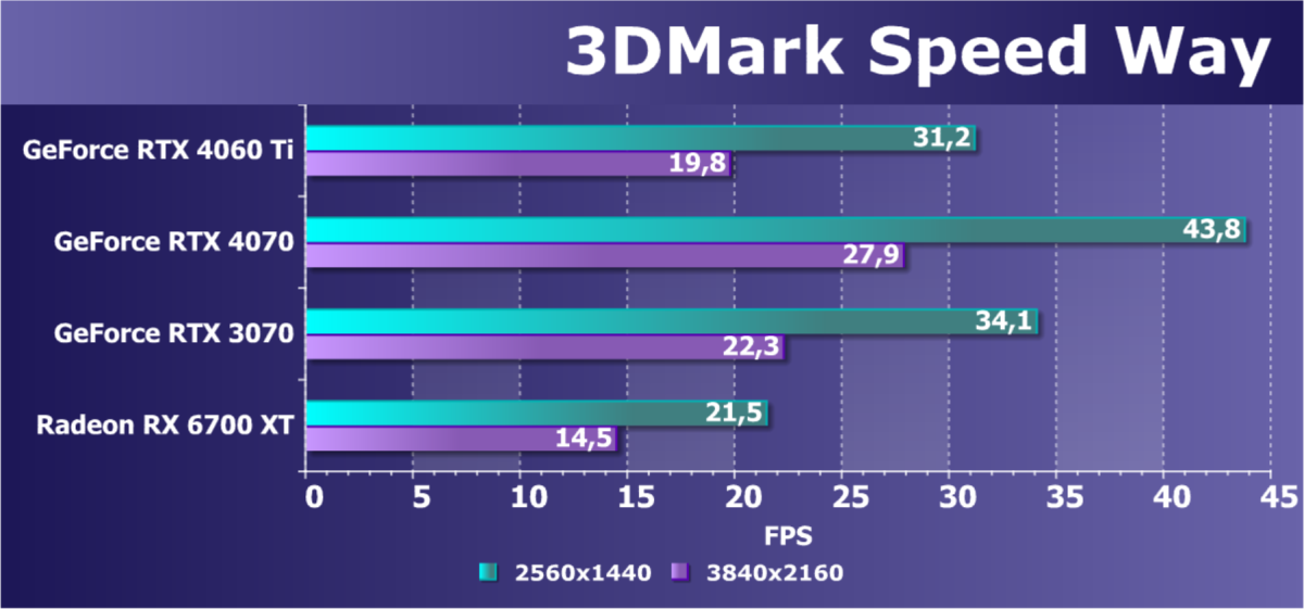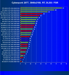 Безусловно, включение RT сильно бьет по семейству Radeon, и даже использование масштабирования FSR не сильно помогает картам AMD. Плюс GeForce RTX 4060 Ti поддерживает DLSS 3.0, что может оказаться козырем не только против ускорителей AMD, но и против решений семейства GeForce RTX 30. Однако на сегодня игр с поддержкой DLSS 3.0 крайне мало, не более нескольких десятков названий.
