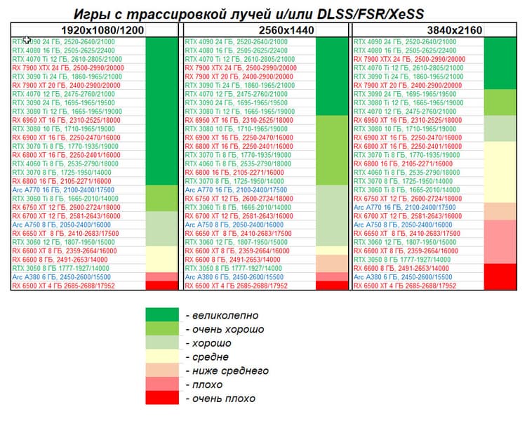 - Вариант рейтинга полезности с включением RT/DLSS/FSR/XeSS